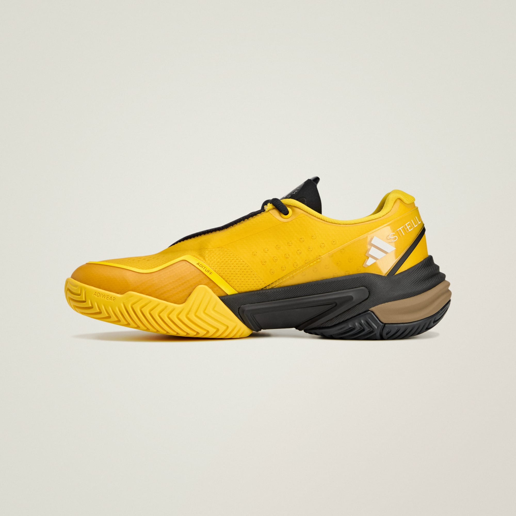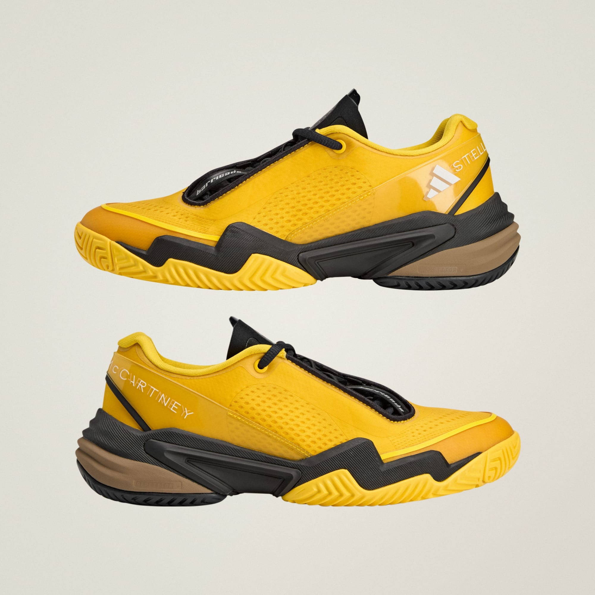 Whether you're on the tennis court or strolling through the shopping courtyard, you can step out in confidence and style with the adidas by Stella McCartney Barricade shoes. Engineered for the modern athlete, these shoes blend functionality with elevated design for an unmistakable look—on and off the court. The lightweight and responsive Repetitor foam midsole is a highly cushioned foam, that brings an energetic feel to every step. And with Geofit heel pods you get additional comfort, support and protection.. The mixed-material upper, combined with asymmetric lacing and bold design accents, creates a striking silhouette that stands out from the crowd. The result is a shoe that’s not only performance-driven but also a reflection of your individuality.