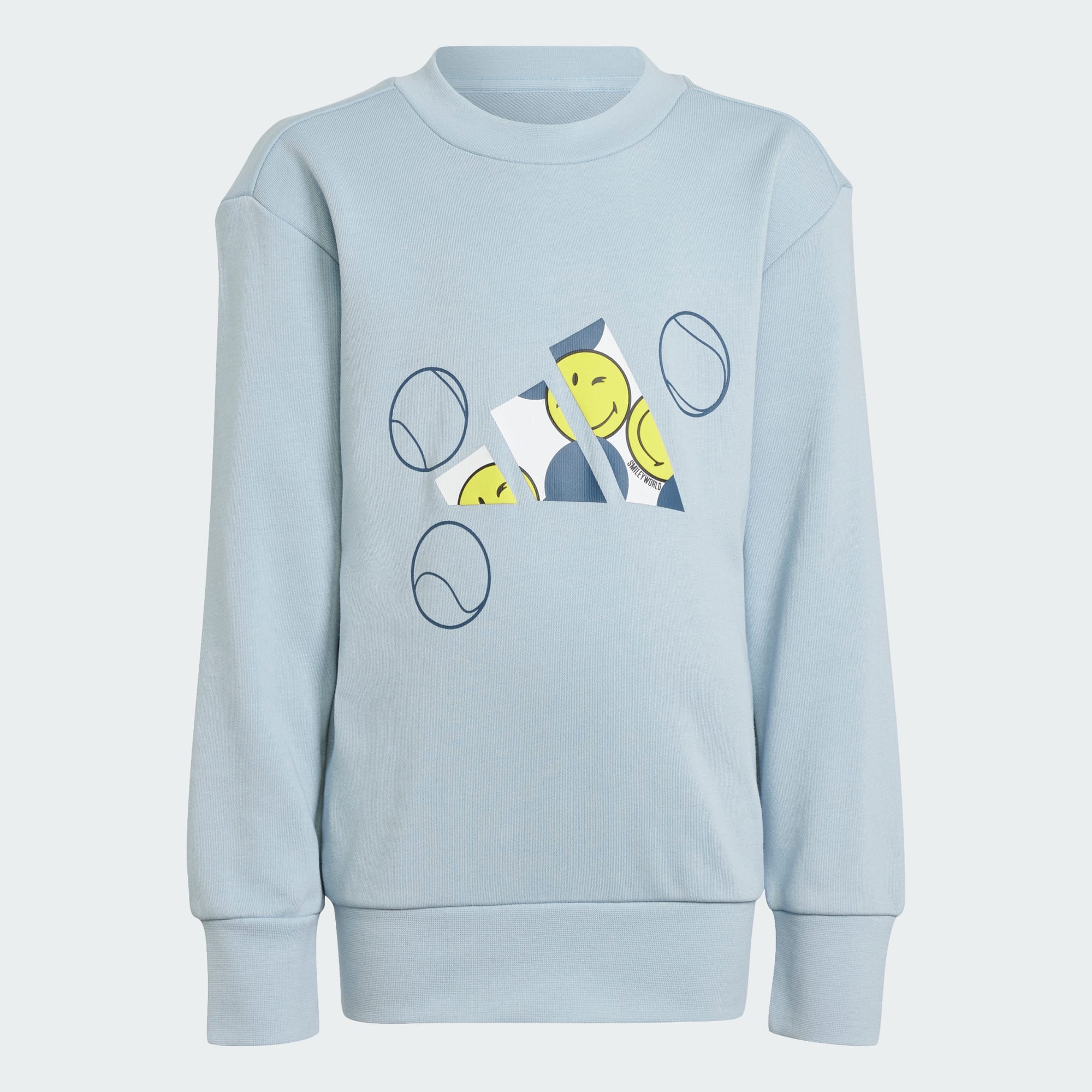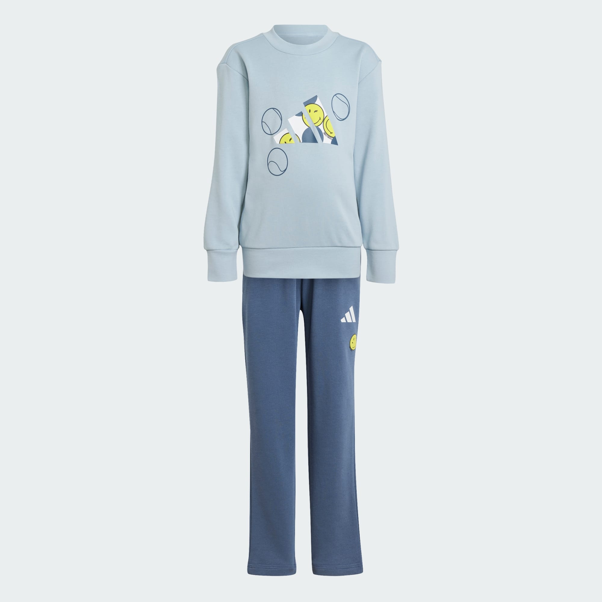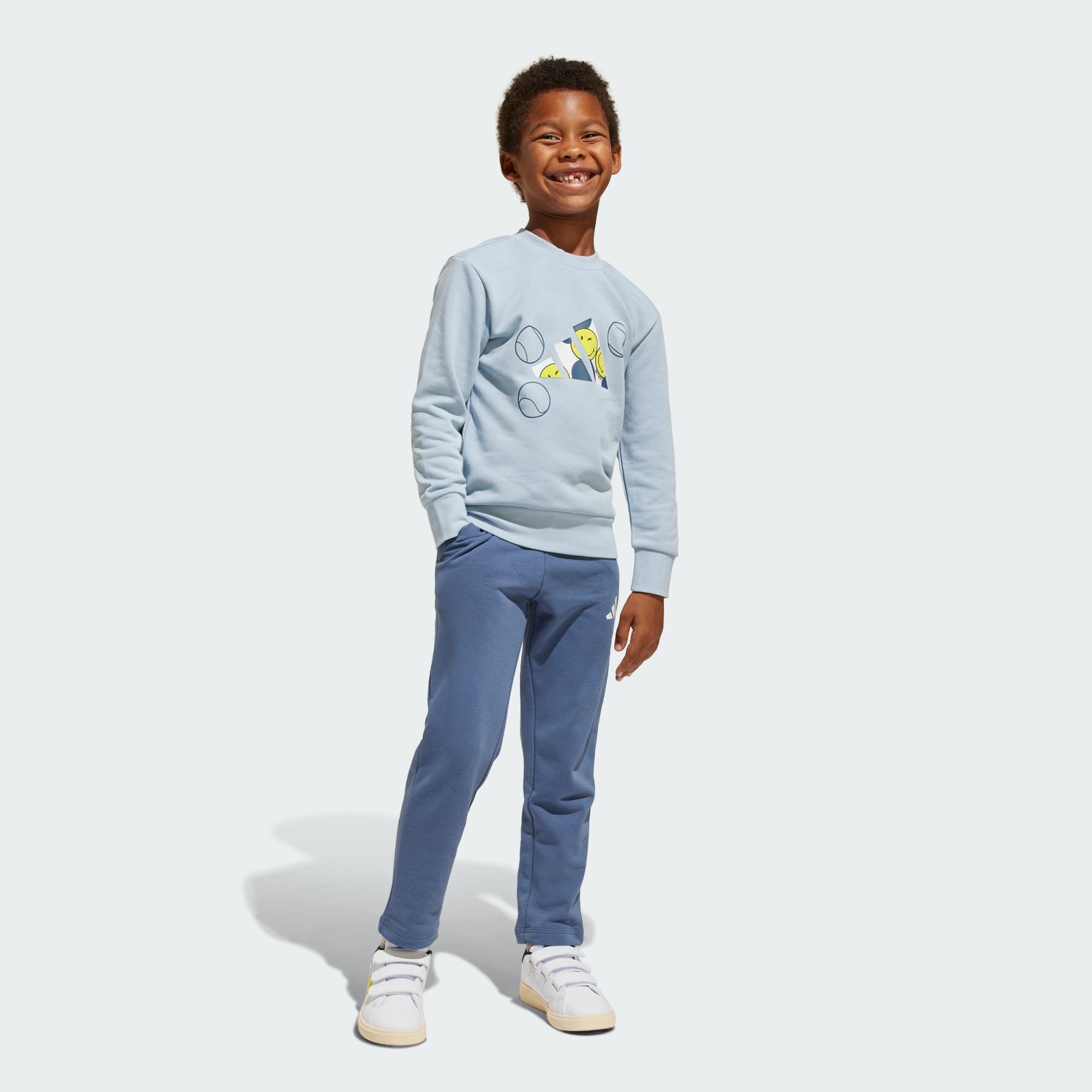 All-day comfort goes perfectly with all-day smiles. This kids' adidas joggers set is made for days filled with endless joy. The soft French terry build keeps kids cosy while ribbed cuffs ensure a perfect fit. Playful smiley face graphics designed in partnership with the Smiley Company are sure to light up their day.