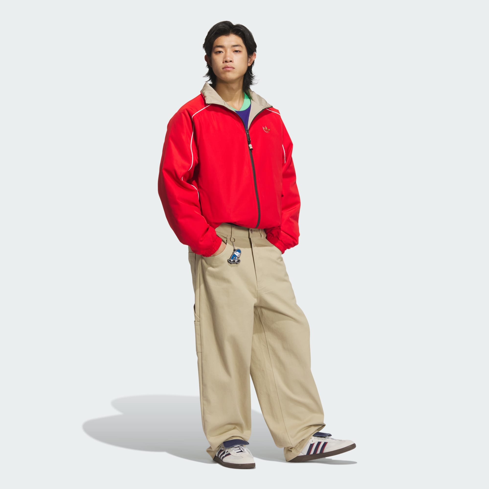 adidas track jackets are famous for their versatility, and this one adds some holiday flair. You'll be comfortable whether you're braving the elements or just kicking back at home. One side features a Chinese New Year-inspired graphic, and the other keeps things simple.