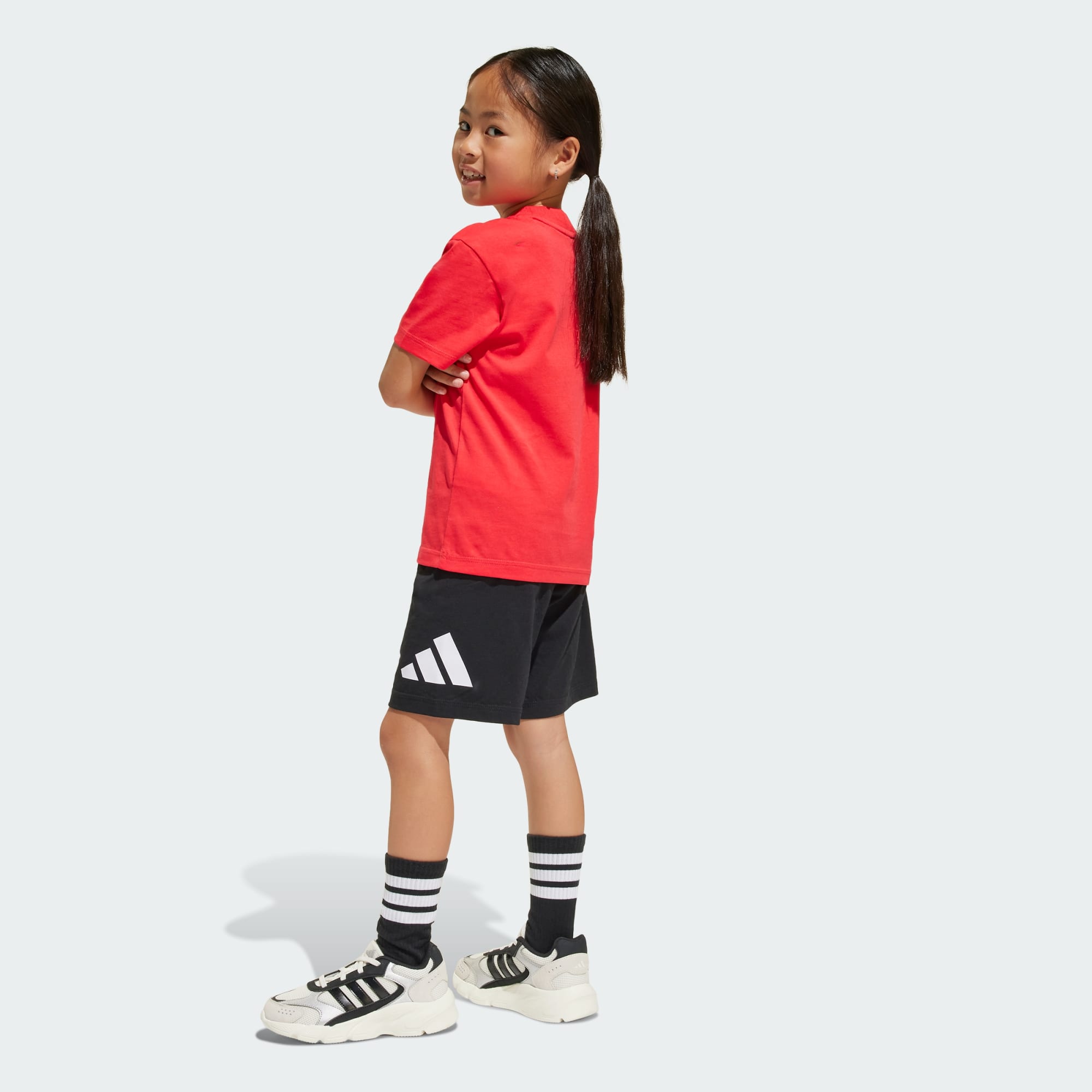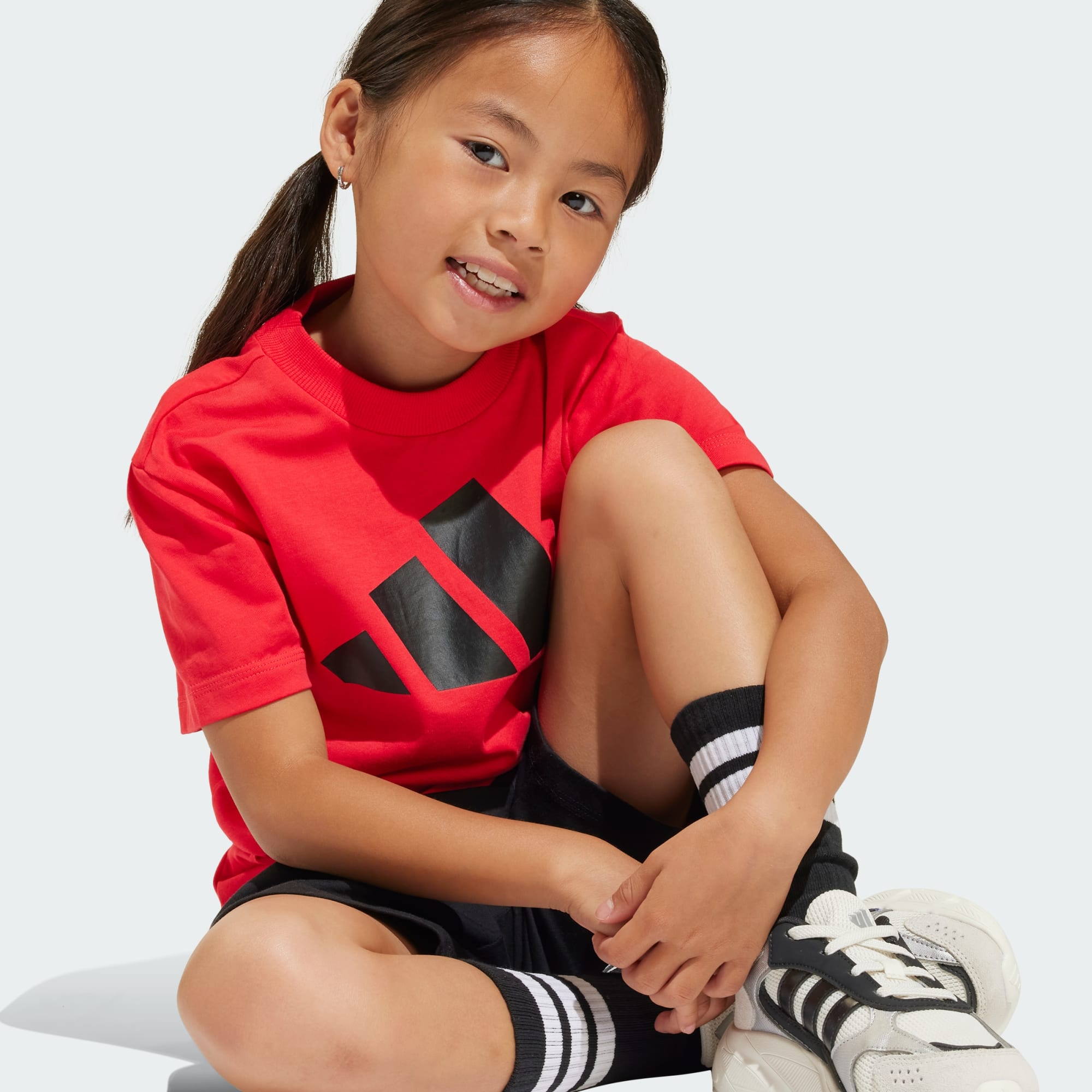 A kids' tee-and-shorts set with plenty of brand pride.