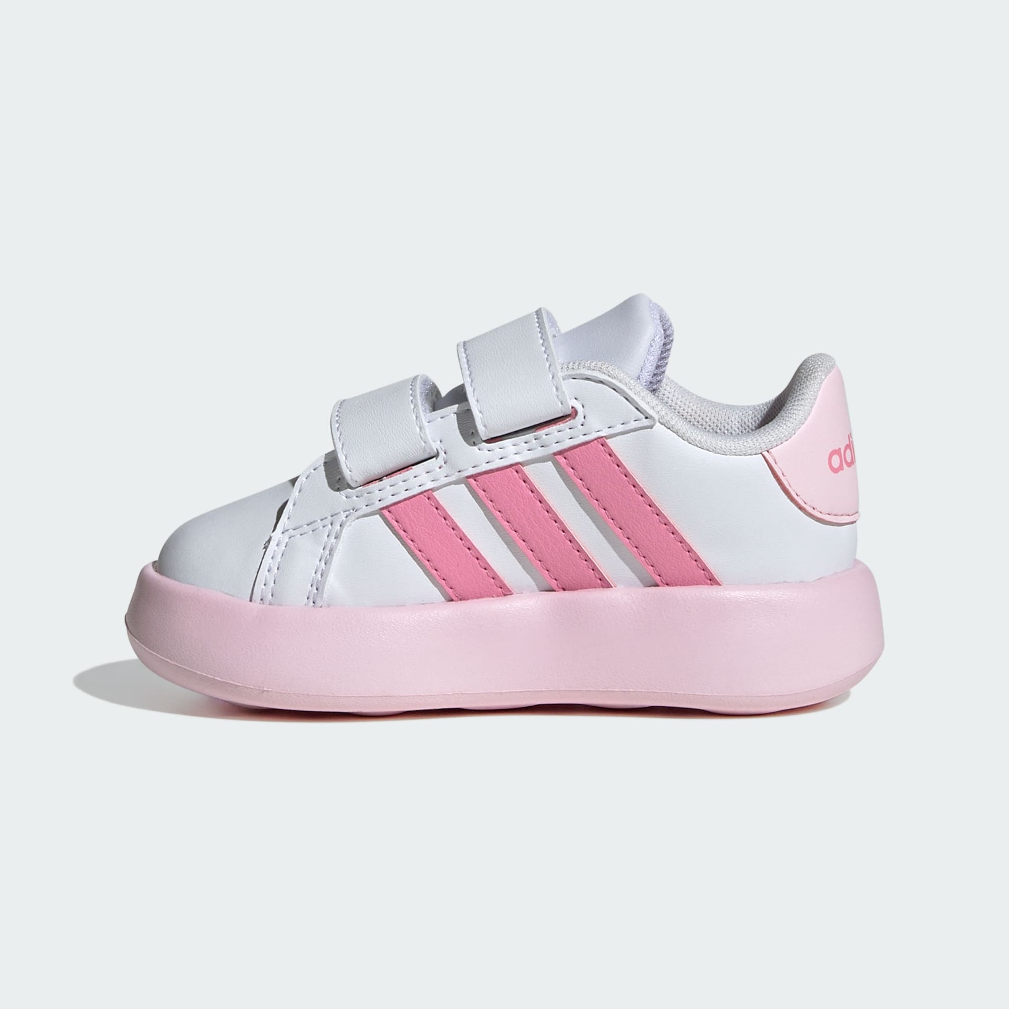 If your infant could talk, they'd tell you how much they love these adidas Grand Court shoes! Hook-and-loop straps make slipping these on a cinch, while the bubbly EVA sole keeps little growing feet happy. Whether they're crawling, cruising or taking their first steps, the fun colours and classic 3-Stripes will inspire a lifetime of play. This product features at least 20% recycled materials. By reusing materials that have already been created, we help to reduce waste and our reliance on finite resources and reduce the footprint of the products we make.