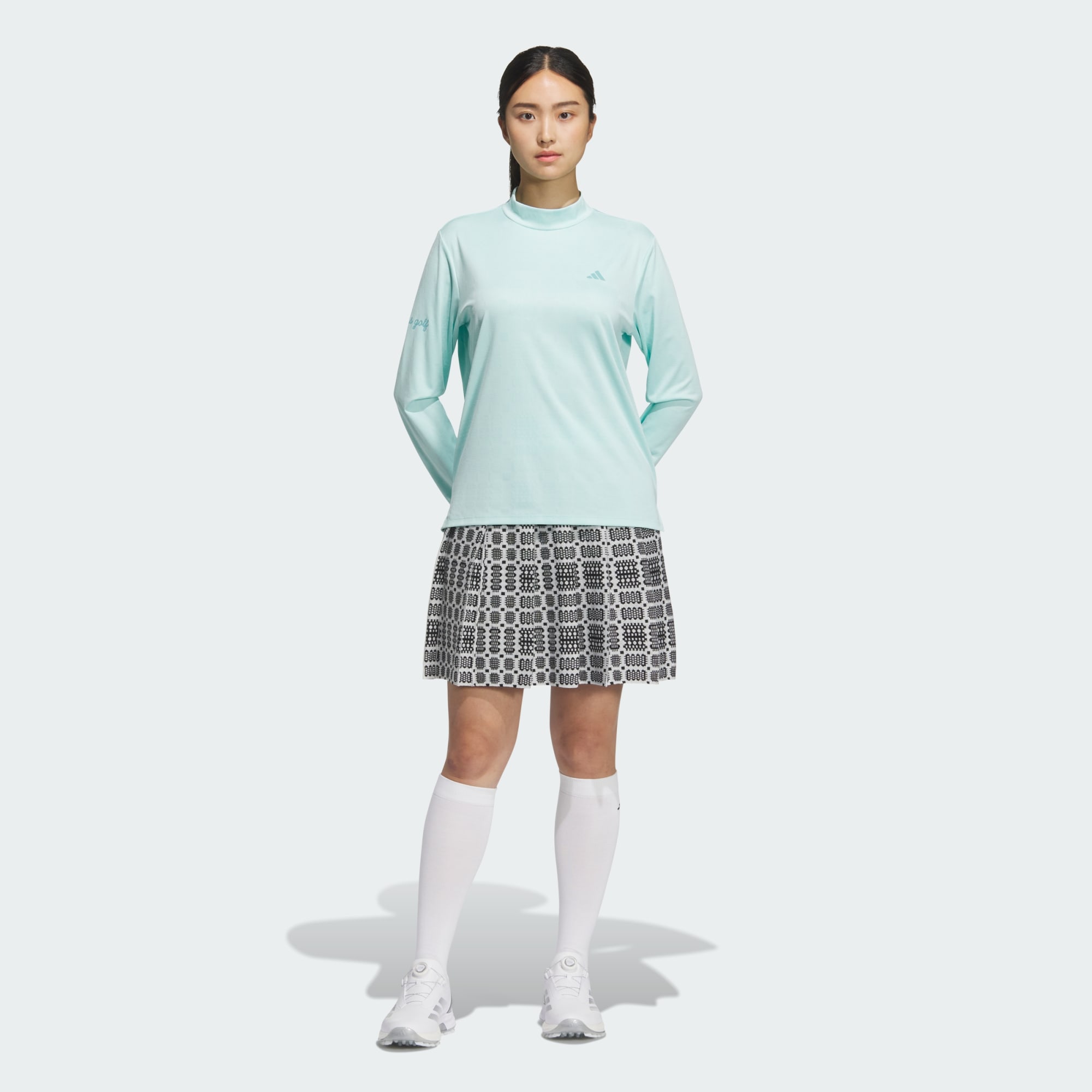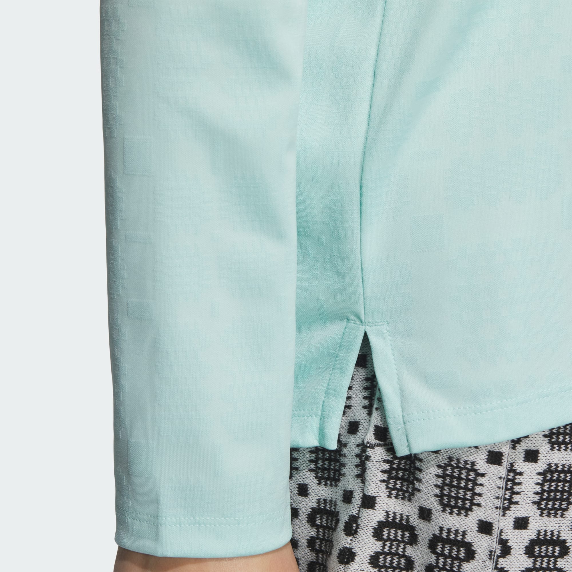 Focus on shaving strokes in this golf polo. The mock neck and long sleeves provide extra coverage, while the jacquard knit adds a subtle texture. adidas AEROREADY manages sweat to keep you cool, dry and comfortable, while a relaxed fit gives you room to swing freely.