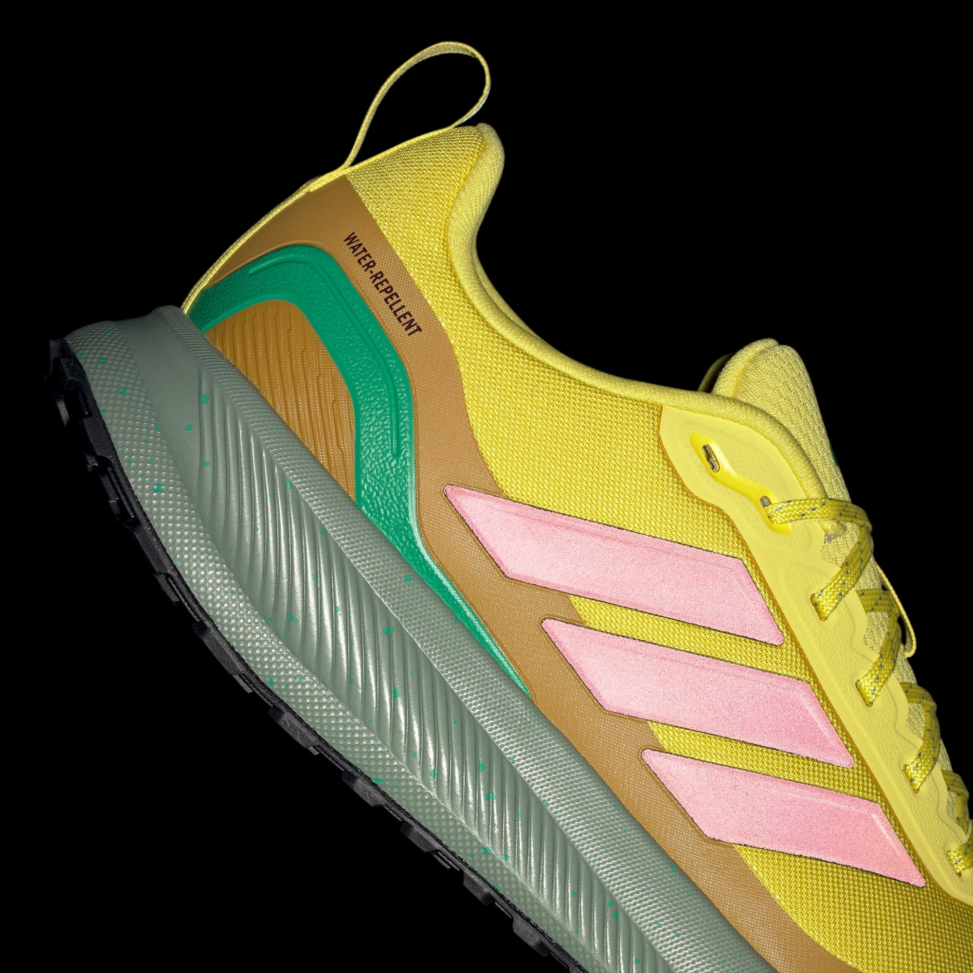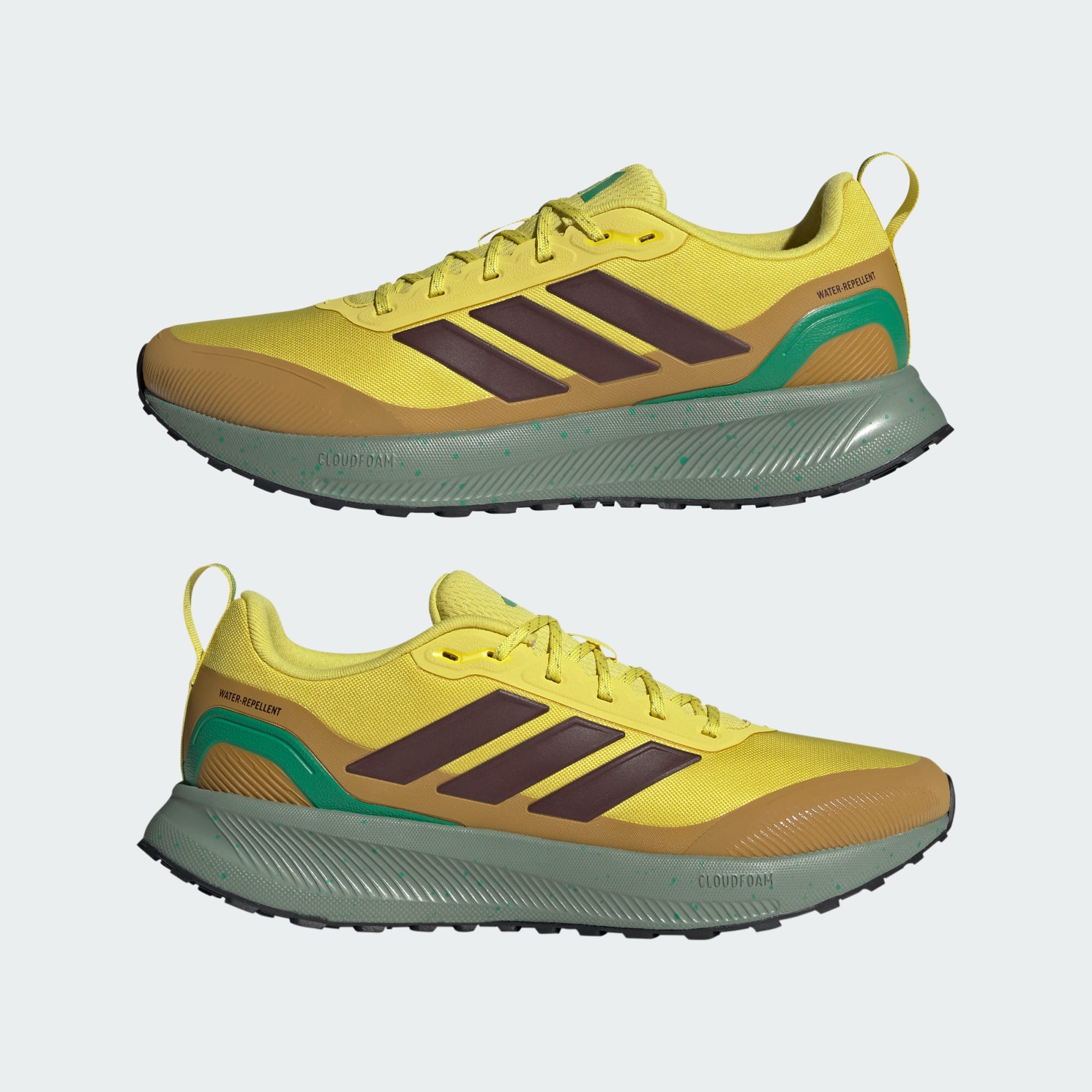 When your run takes you off the track, lace up these adidas running shoes. They're made for adventurous runs on park trails and uneven terrain with a water-repellent upper that sheds splashes of water and a lugged Adiwear outsole that grips as you go. Cloudfoam cushioning gives you all you the plush support you expect from a Runfalcon.