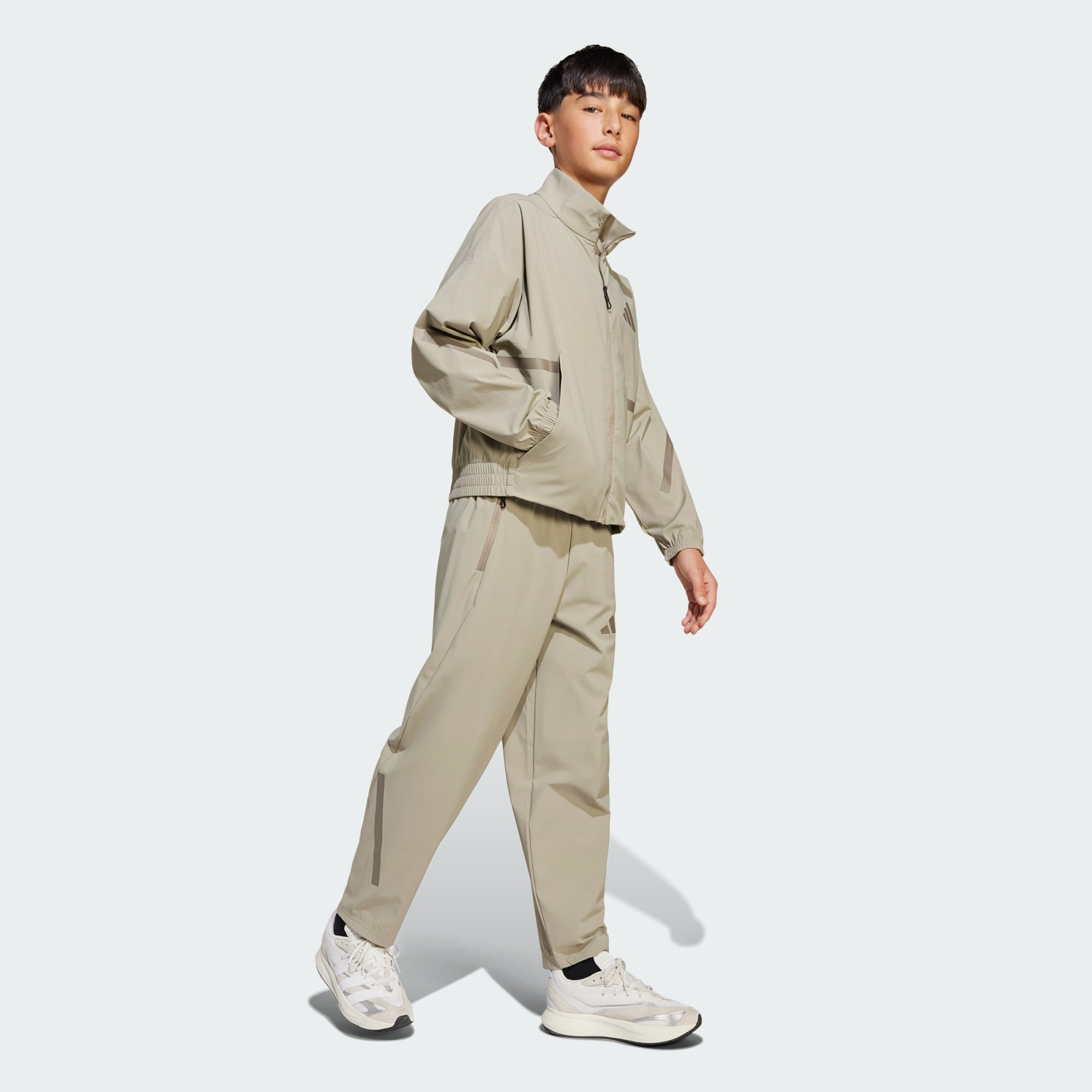 Stay connected to the global community of sport in these juniors' adidas Z.N.E. Woven Pants. Subtle matte rubber graphics inspired by the lines on the field lend a sophisticated touch. Whether exploring the city or just hanging out with friends, the stretchy ripstop fabric and loose fit provide day-long comfort. Thanks to their versatile design, these pants can take you from school to weekend fun and everywhere in between. This product is made with at least 70% recycled materials. By reusing materials that have already been created, we help to reduce waste and our reliance on finite resources and reduce the footprint of the products we make.