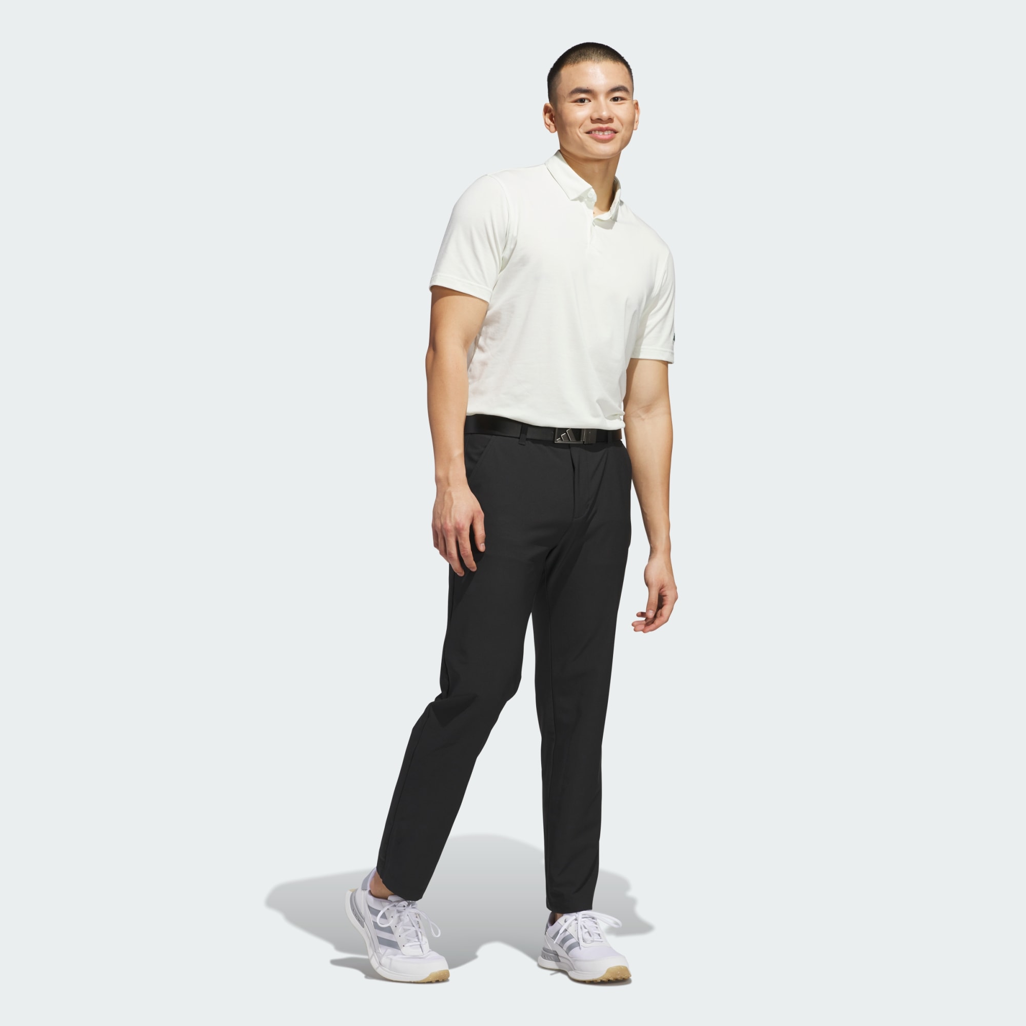 Celana panjang golf beperforma tinggi yang sebagian dibuat dari material daur ulang.