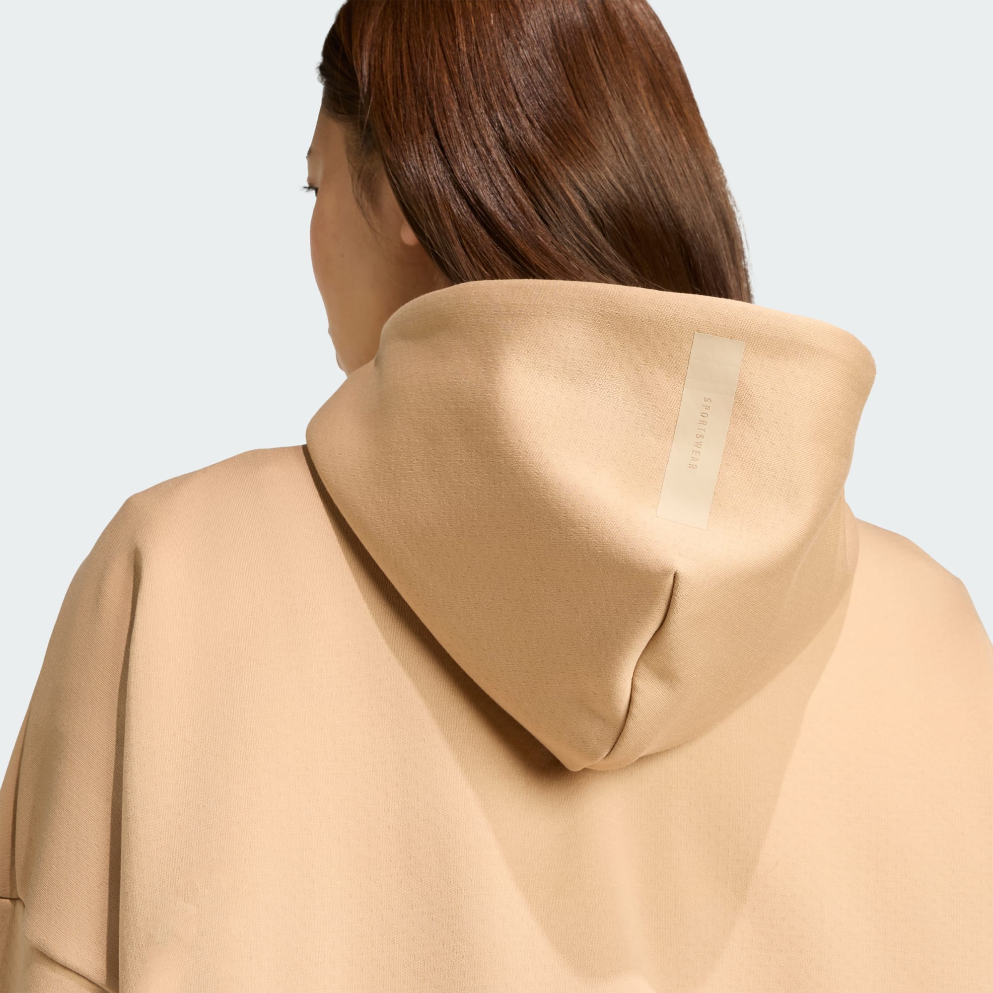 Hoodie sporty yang sebagian dibuat dari paduan material daur ulang dan terbarukan.