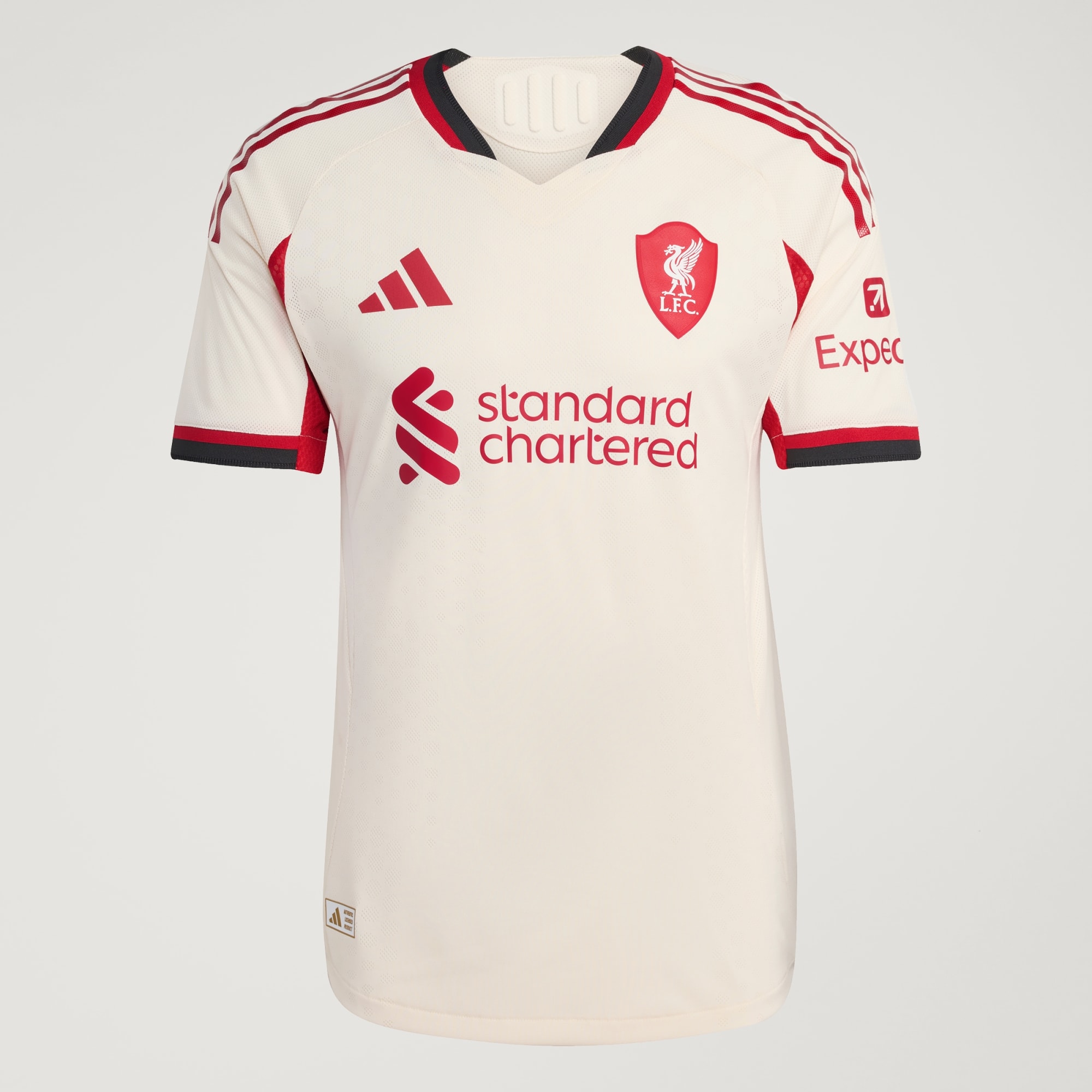 Di musim 25/26, semangat Anfield terasa di mana-mana. Dibuat untuk mewakili markas ikonis Liverpool FC pada hari away, jersey adidas authentic ini menampilkan emblem yang dibuat khusus yang bentuknya terinspirasi oleh atap pelana melengkung di atas Tribun Utama stadion lama. Didesain untuk membantu tim meraih kemenangan di laga tandang, jersey sepak bola berfokus performa ini hadir dalam nuansa putih gading yang akan akrab bagi para The Reds yang memahami sejarah klub mereka.