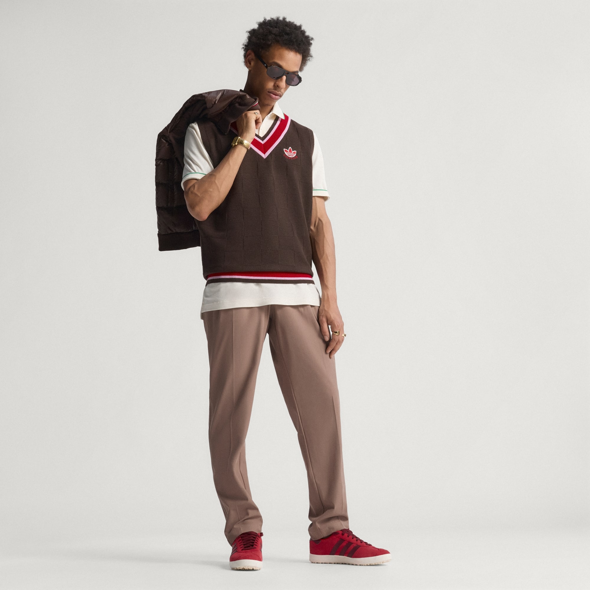 Rompi golf campuran wol dengan gaya Originals.