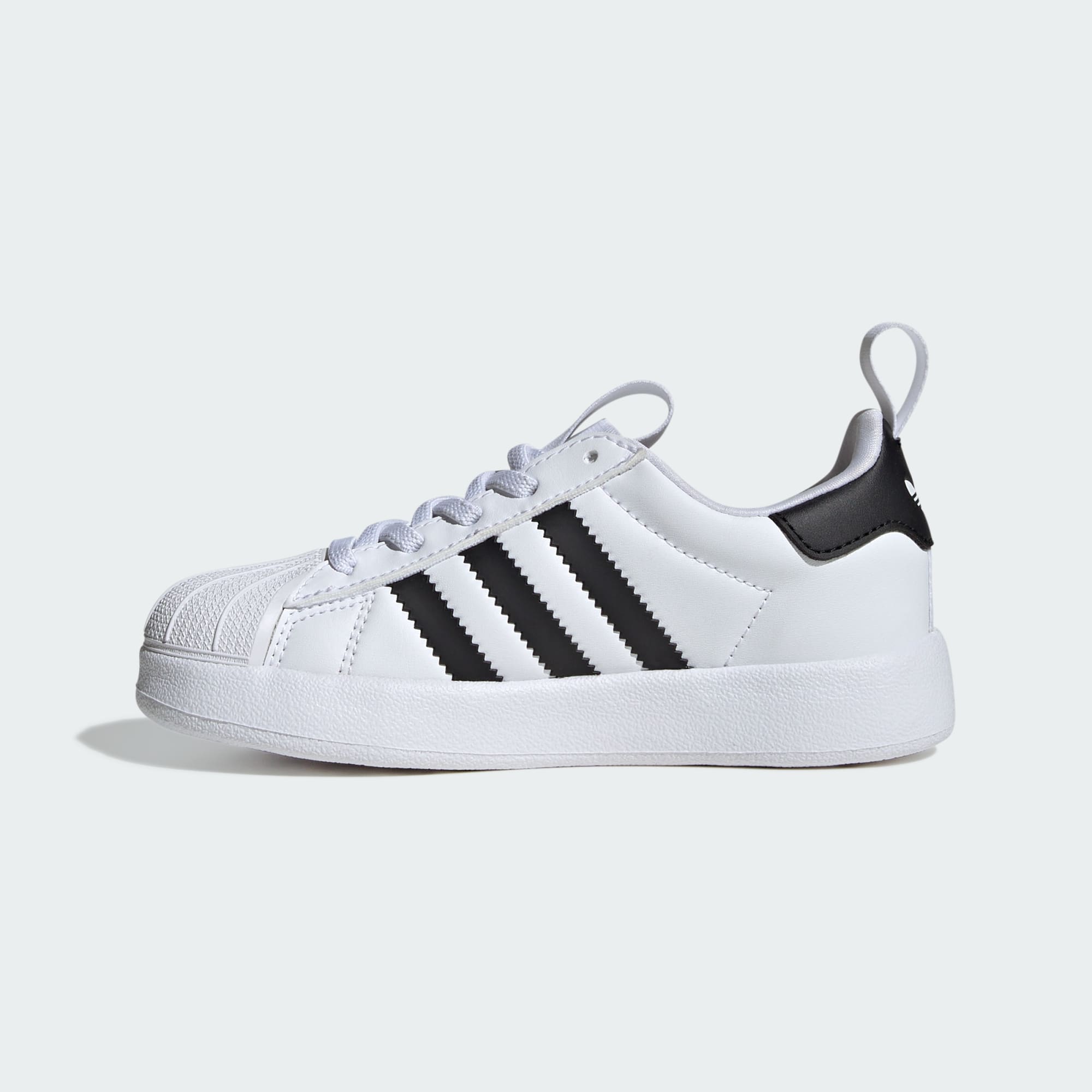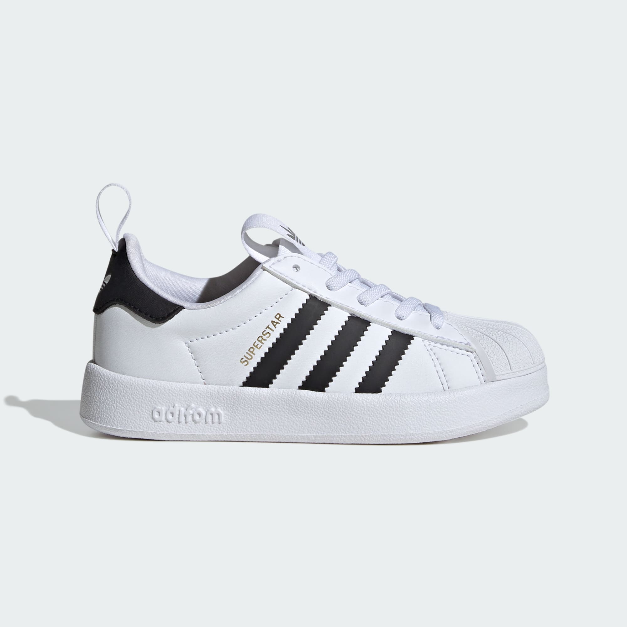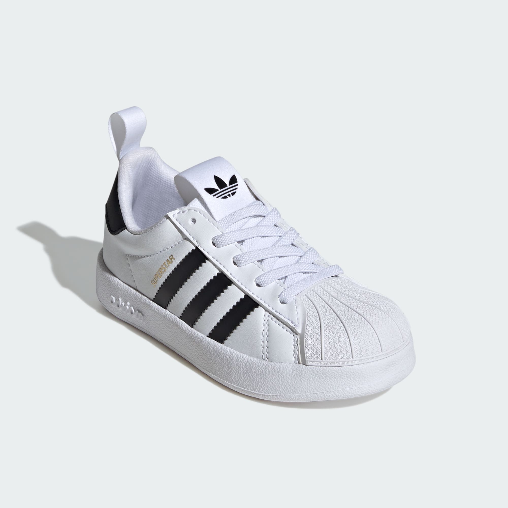 Generasi baru dapat membuat kenangan 3-Stripes sendiri dengan mengenakan Sepatu adidas Superstar 360 untuk anak. Dibuat dengan proporsi anak-anak, sepatu ini memadukan upper yang halus dan lembut dengan tali elastis dan kerah yang terbuka lebar sehingga mudah dipakai anak-anak. Shell toe yang terkenal di pangkal sepatu menunjuk jalan ke depan, sementara outsole Adifom yang fleksibel menyediakan bantalan dan topangan, dengan pencengkeram berbentuk Trefoil tercetak langsung di dalamnya.