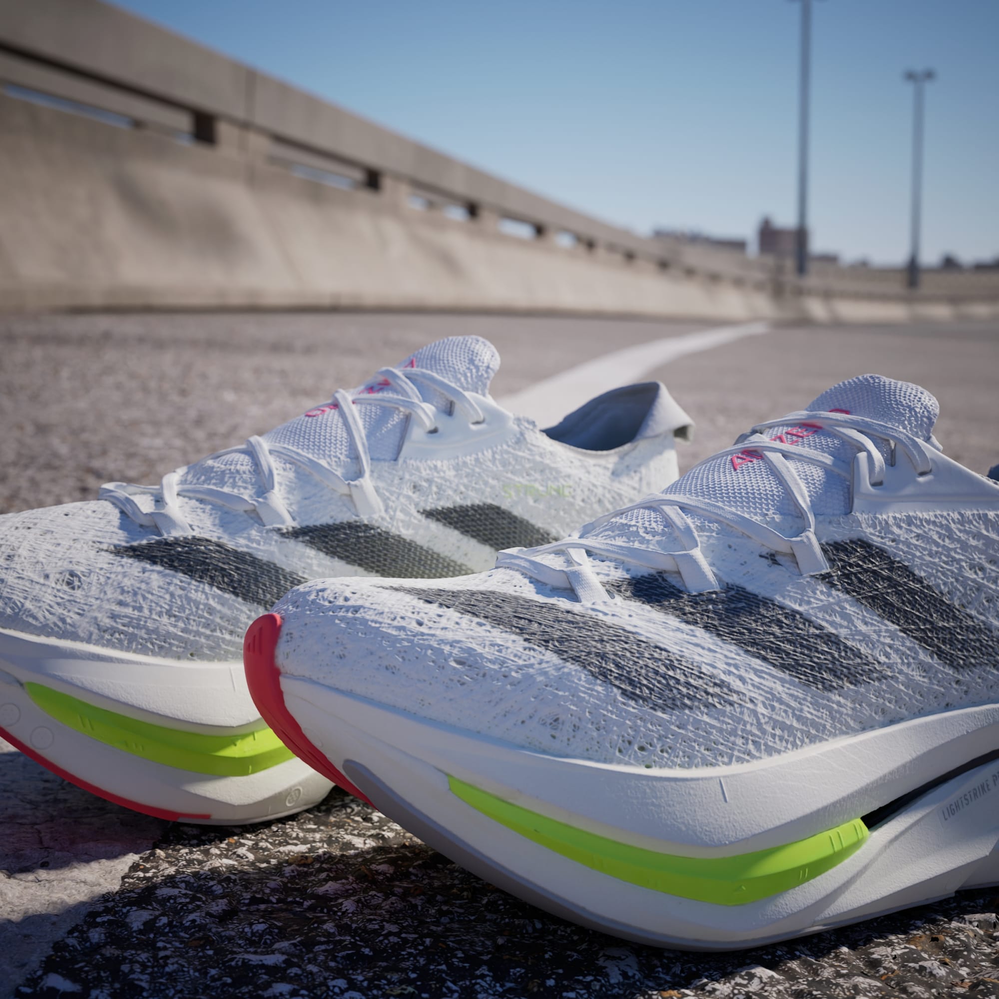 Tiga lapisan LIGHTSTRIKE PRO, lebih dari pada sepatu running adidas lainnya, menciptakan tumpukan setinggi 50 mm. Inti energi di antara dua lapisan busa membantu mengurangi berat, memberikan lebih banyak pantulan di bagian depan dan midfoot.