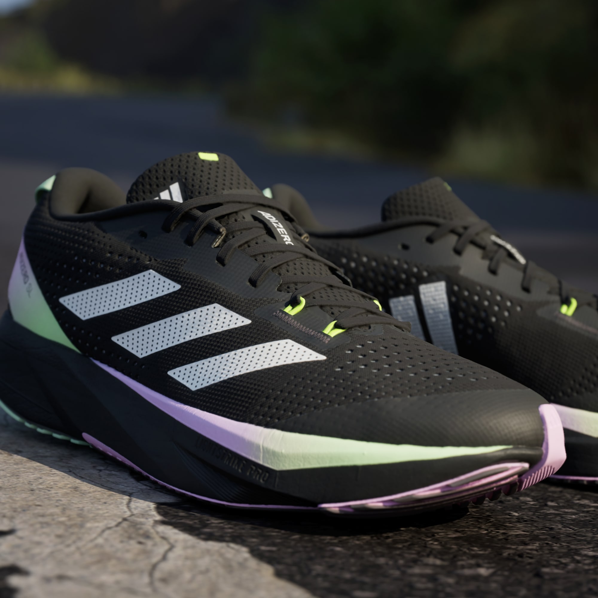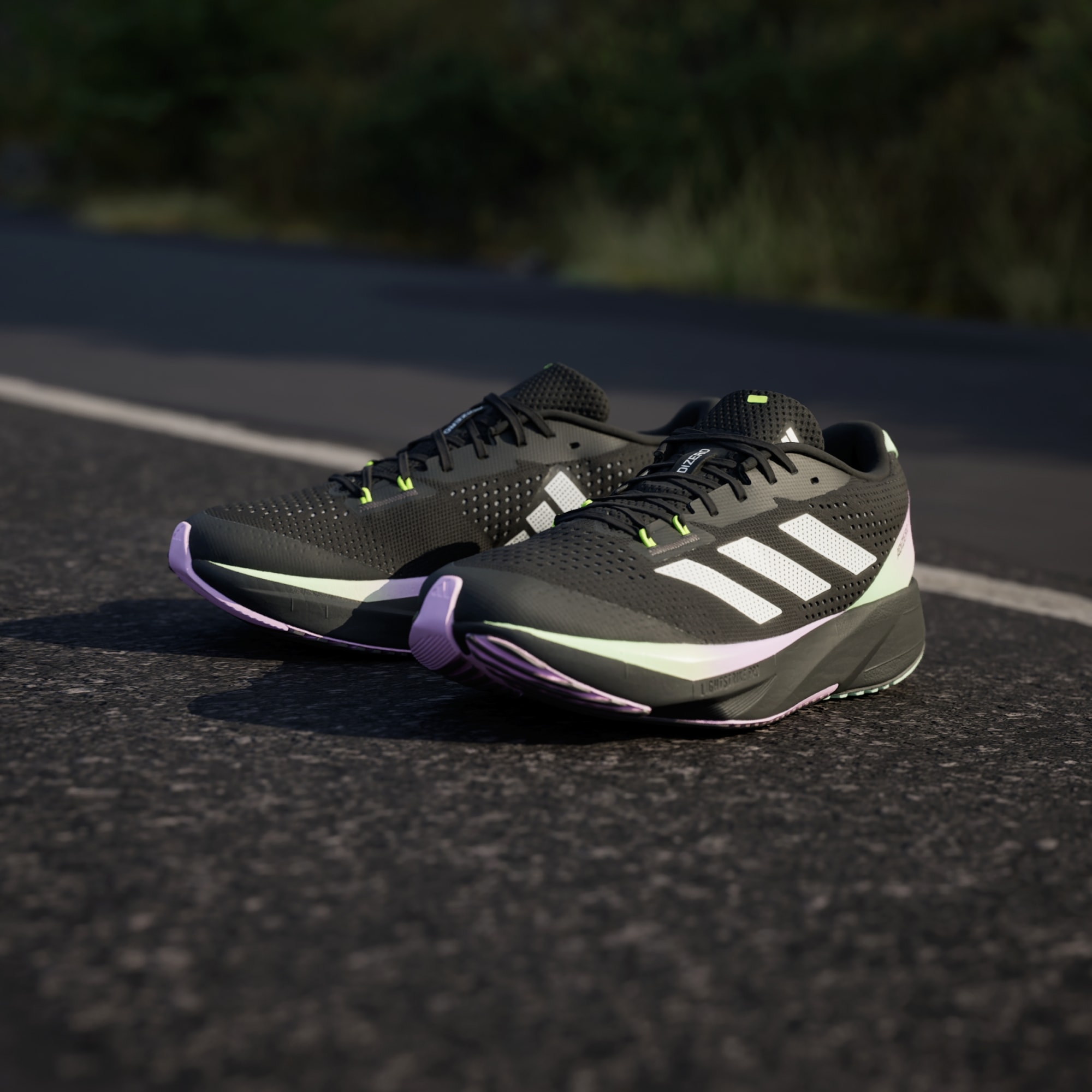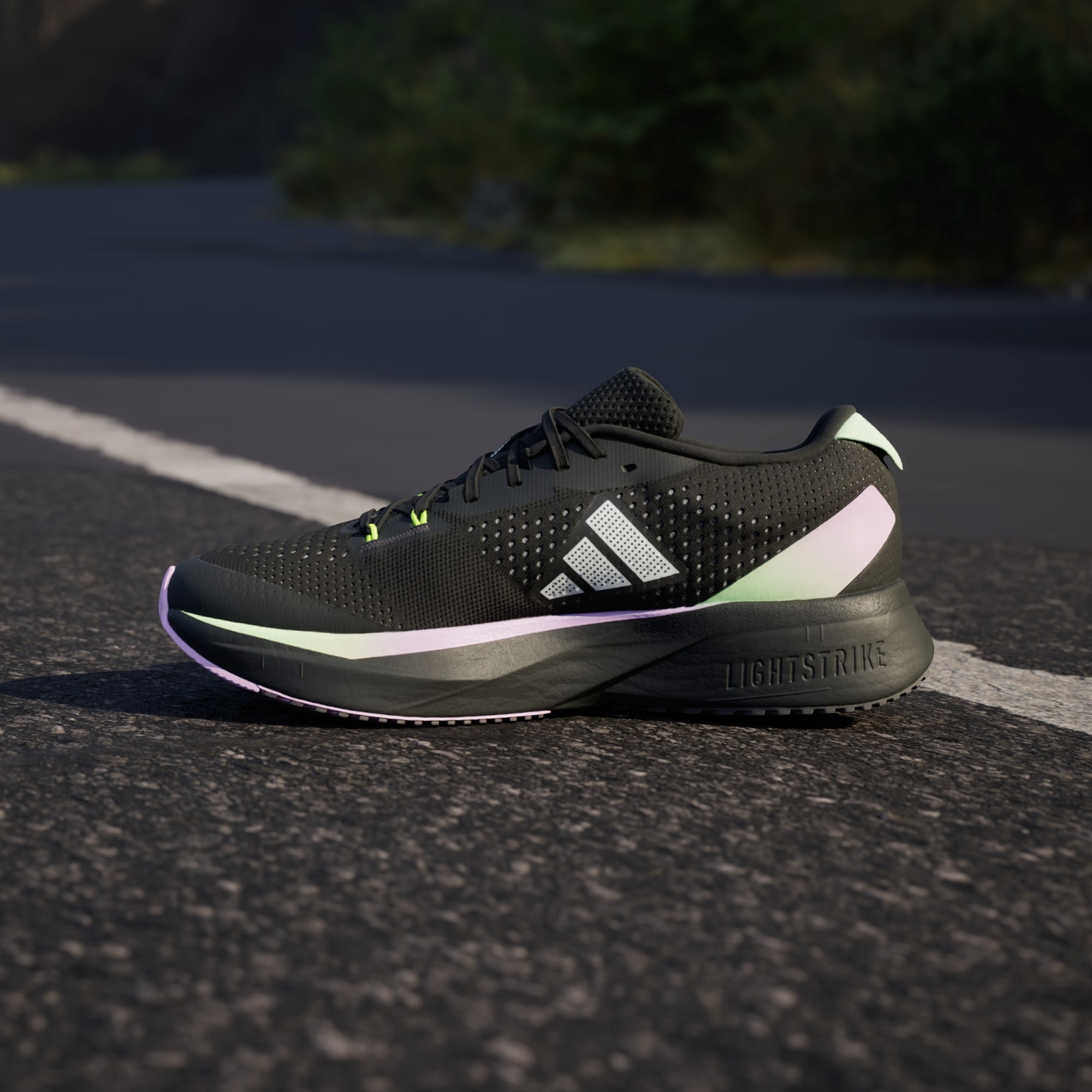 LIGHTSTRIKE PRO foam, also used in the record-breaking Adizero Adios Pro models, is strategically inserted in the forefoot area, designed for fast training runs.