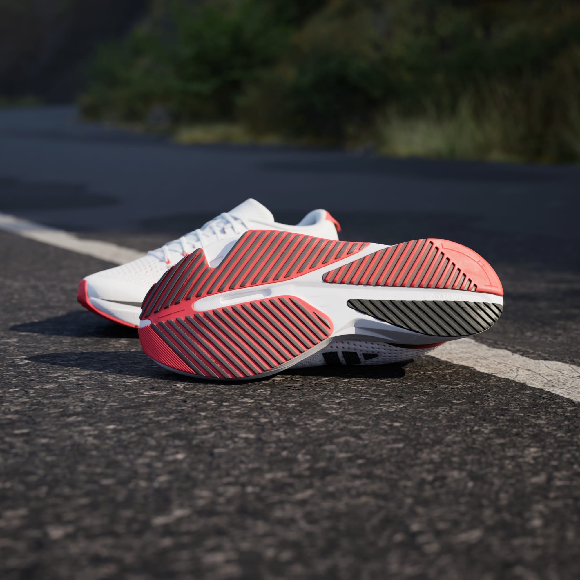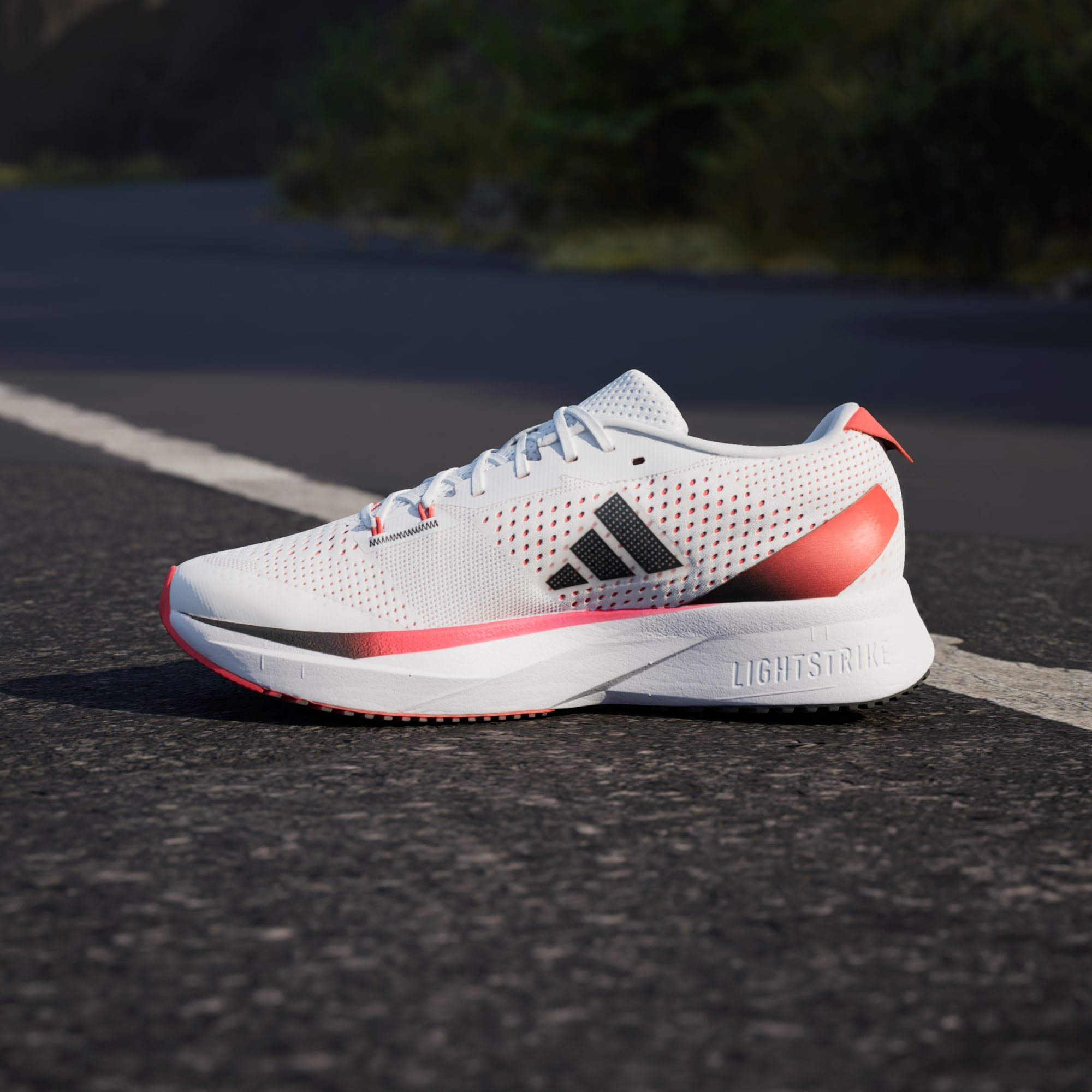 LIGHTSTRIKE PRO foam, also used in the record-breaking Adizero Adios Pro models, is strategically inserted in the forefoot area, designed for fast training runs.