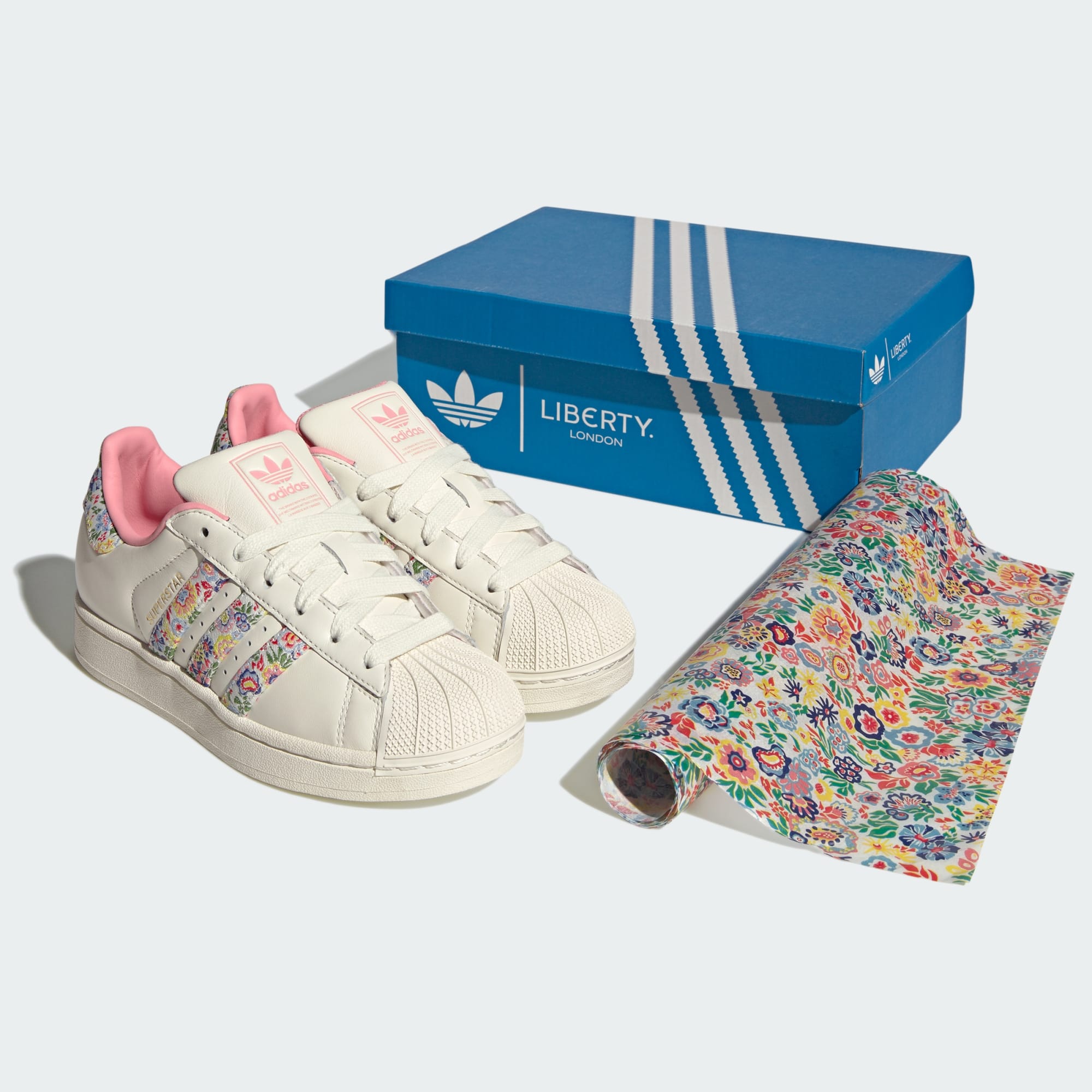 Selama lebih dari 50 tahun, sepatu adidas Superstar telah menjadi andalan para legenda olahraga dan jalanan. Kini, sepatu adidas Superstar yang ikonis hadir kembali dengan jauh lebih baik dalam kolaborasi bersama brand Inggris, Liberty London yang ikonis. Edisi spesial sepatu klasik untuk junior ini dihiasi motif bunga-bunga khas Liberty London pada upper berbahan kulit, yang menghadirkan sentuhan desain yang bernilai seni pada sepatu.