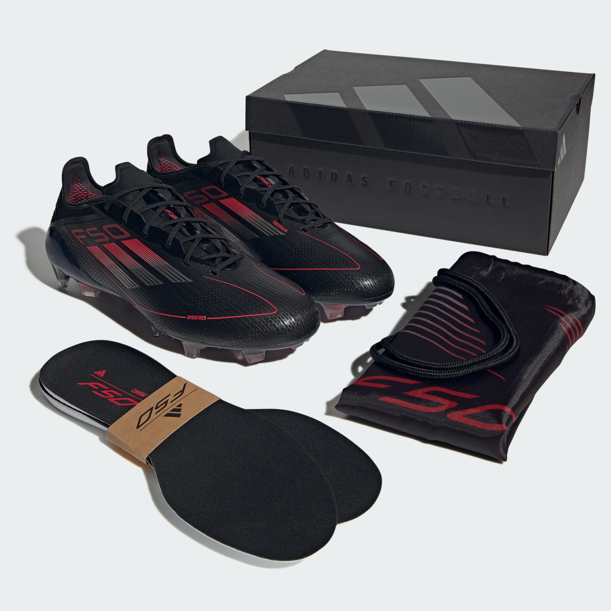 Pacu tempo lari hingga batas kemampuan dengan sepatu adidas F50 ringan yang didesain khusus untuk kecepatan. Sepatu bola Elite ini dilengkapi upper Fibertouch yang tipis dengan Compression Fit Tunnel Tongue untuk menghasilkan penguncian dan tekstur Sprintweb 3D untuk membuat bola tetap lekat saat melesat. Didesain untuk lapangan rumput padat, outsole Sprintframe 360 yang elastis menghasilkan akselerasi tinggi.