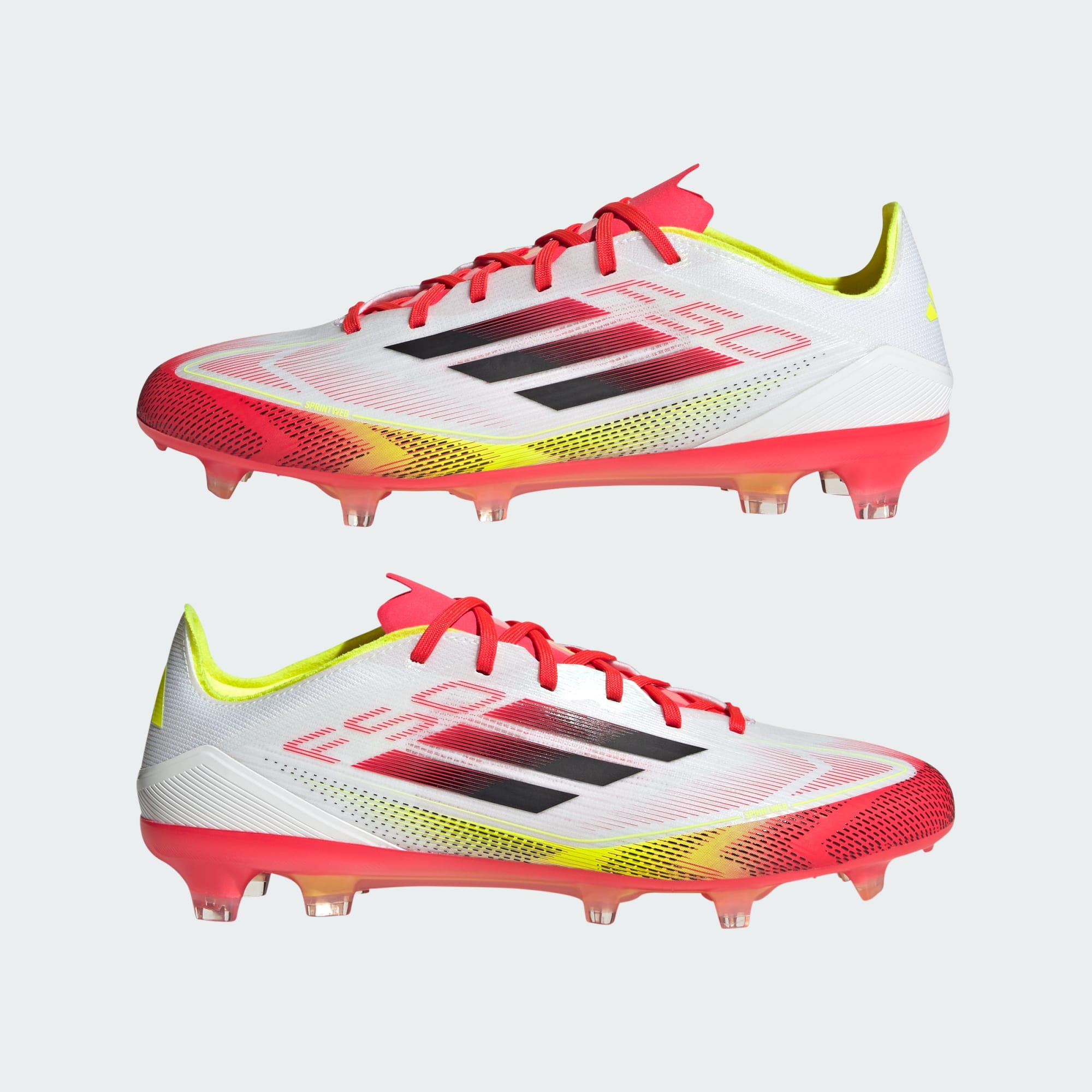 Pacu tempo lari hingga batas kemampuan dengan sepatu adidas F50 yang ringan yang didesain khusus untuk kecepatan. Sepatu bola Pro ini menggunakan upper Fibertouch yang ringan dengan tekstur Sprintweb 3D untuk menggiring bola dengan lincah, dan Compression Fit Tunnel Tongue untuk menghasilkan penguncian yang begitu solid. Outsole Sprintshell 360 pada sepatu ini dioptimalkan agar kaki dapat bergerak sangat cepat di lapangan firm ground.