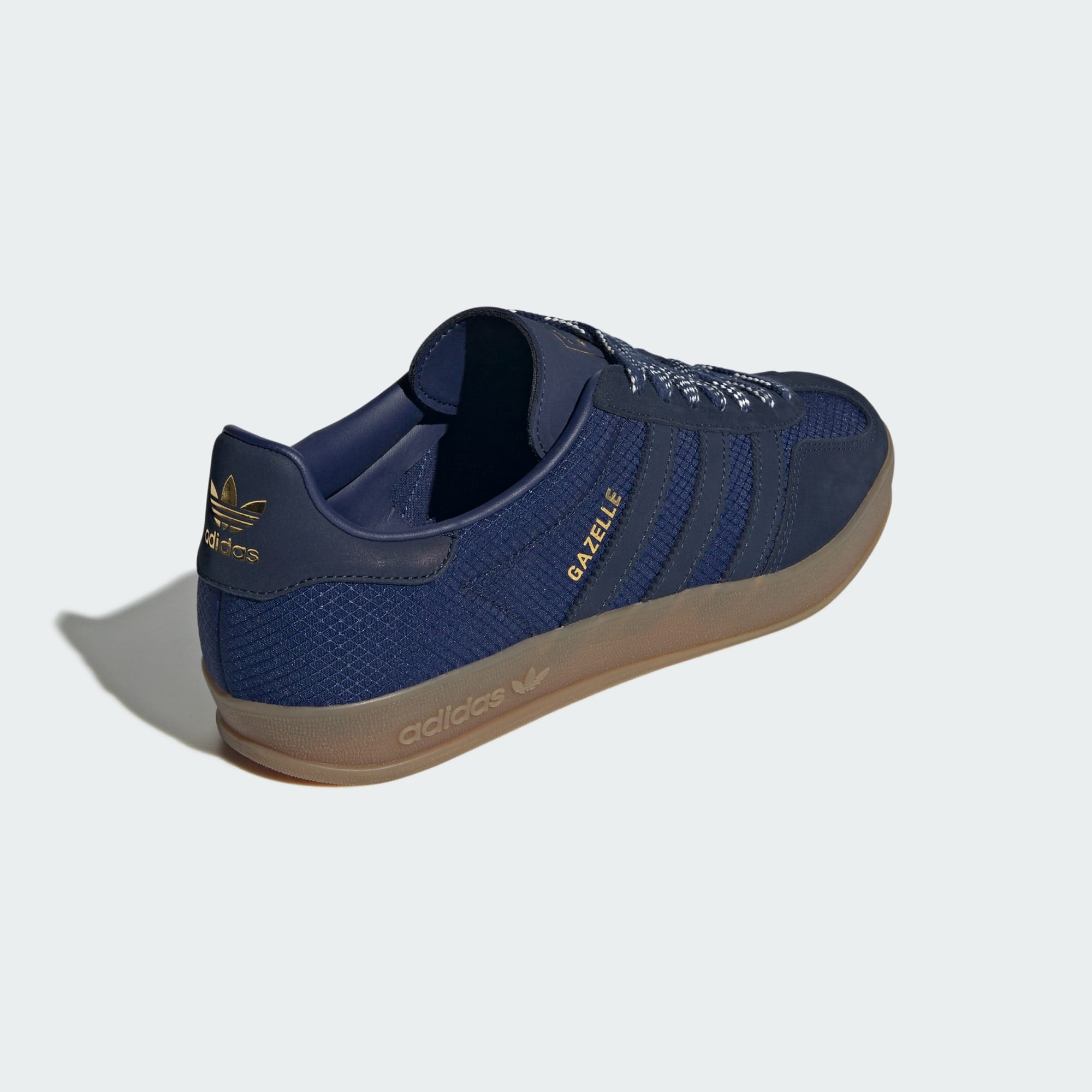 Sepatu Gazelle Indoor dengan semua detail khas klasik berprofil rendah.