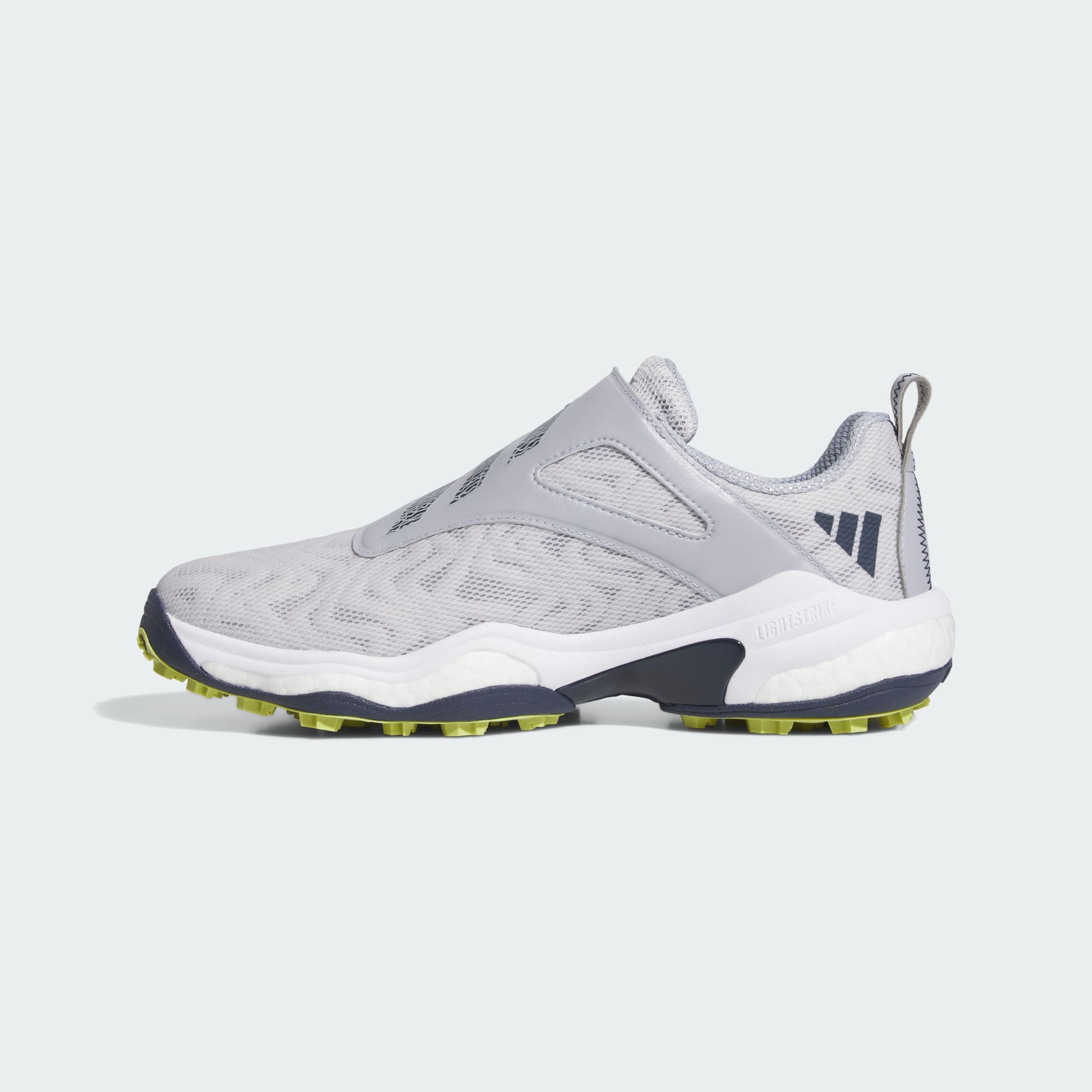 Sepatu performa golf tanpa tali yang sebagian dibuat dari paduan material daur ulang dan terbarukan.