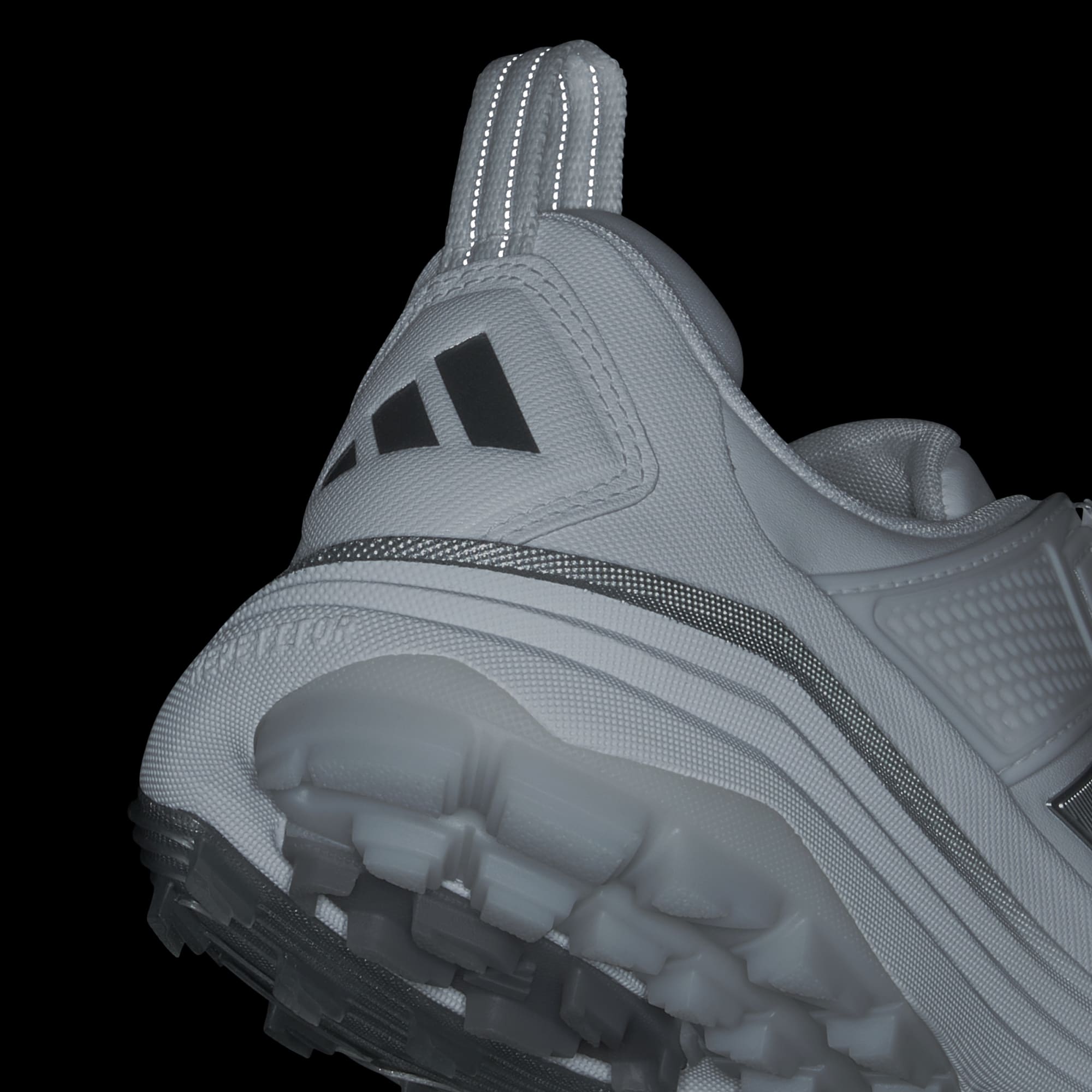 Sepatu golf dengan teknologi Repetitor untuk pengembalian energi dan stabilitas.