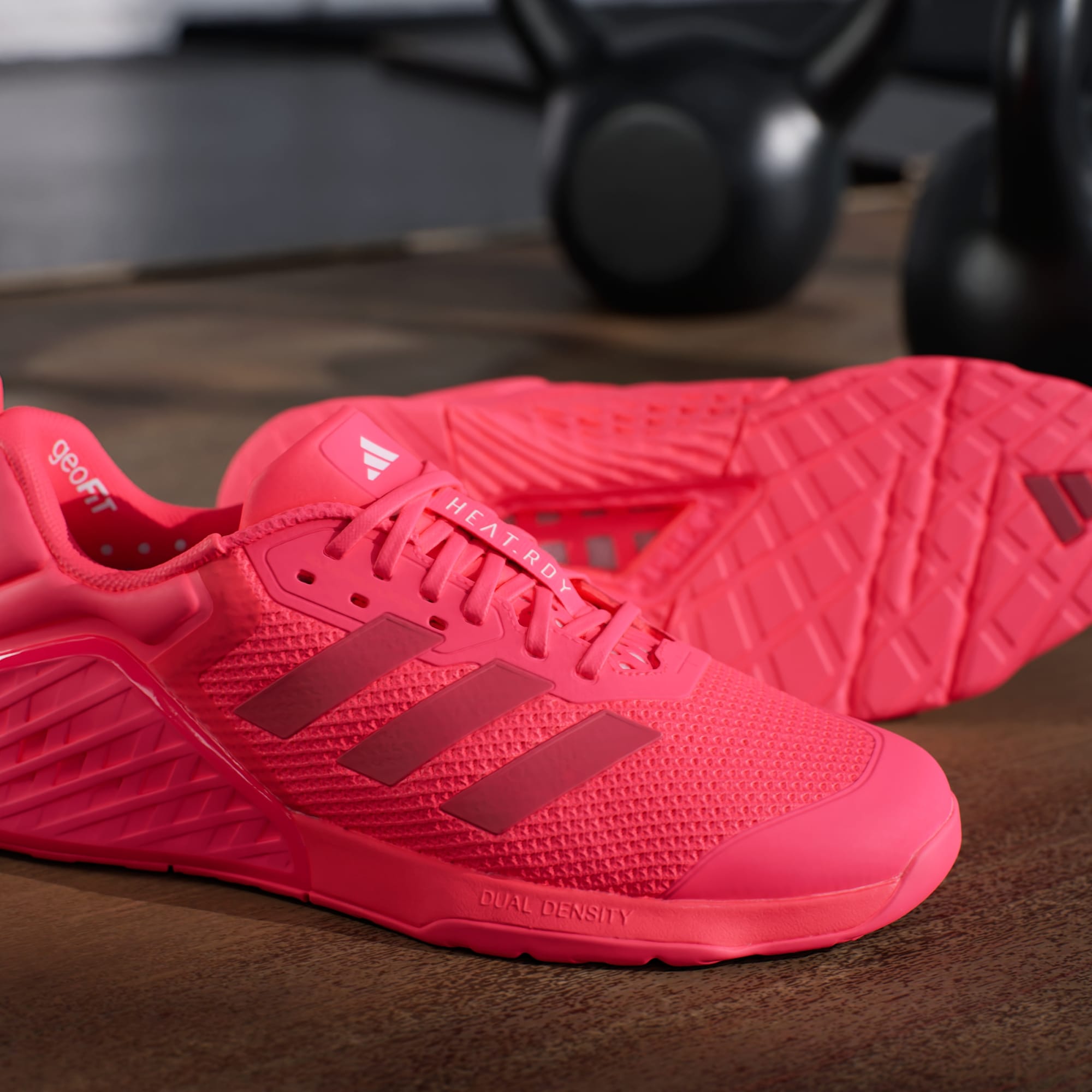 Sepatu trainer Dropset 3 menawarkan dukungan yang stabil untuk gerakan latihan kekuatan, seperti mengangkat, mendorong, atau menarik. Midsole dengan dua tingkat kepadatan memberikan bantalan pada kaki selama repetisi yang intens, sementara dinding samping TPU menstabilkan area midfoot. Teknologi Adidas HEAT.RDY menjaga kaki tetap dingin bahkan ketika suhu latihan meningkat. Lebih lebar dari ukuran standar, sneaker ini dengan nyaman menahan pembengkakan kaki akibat aktivitas.