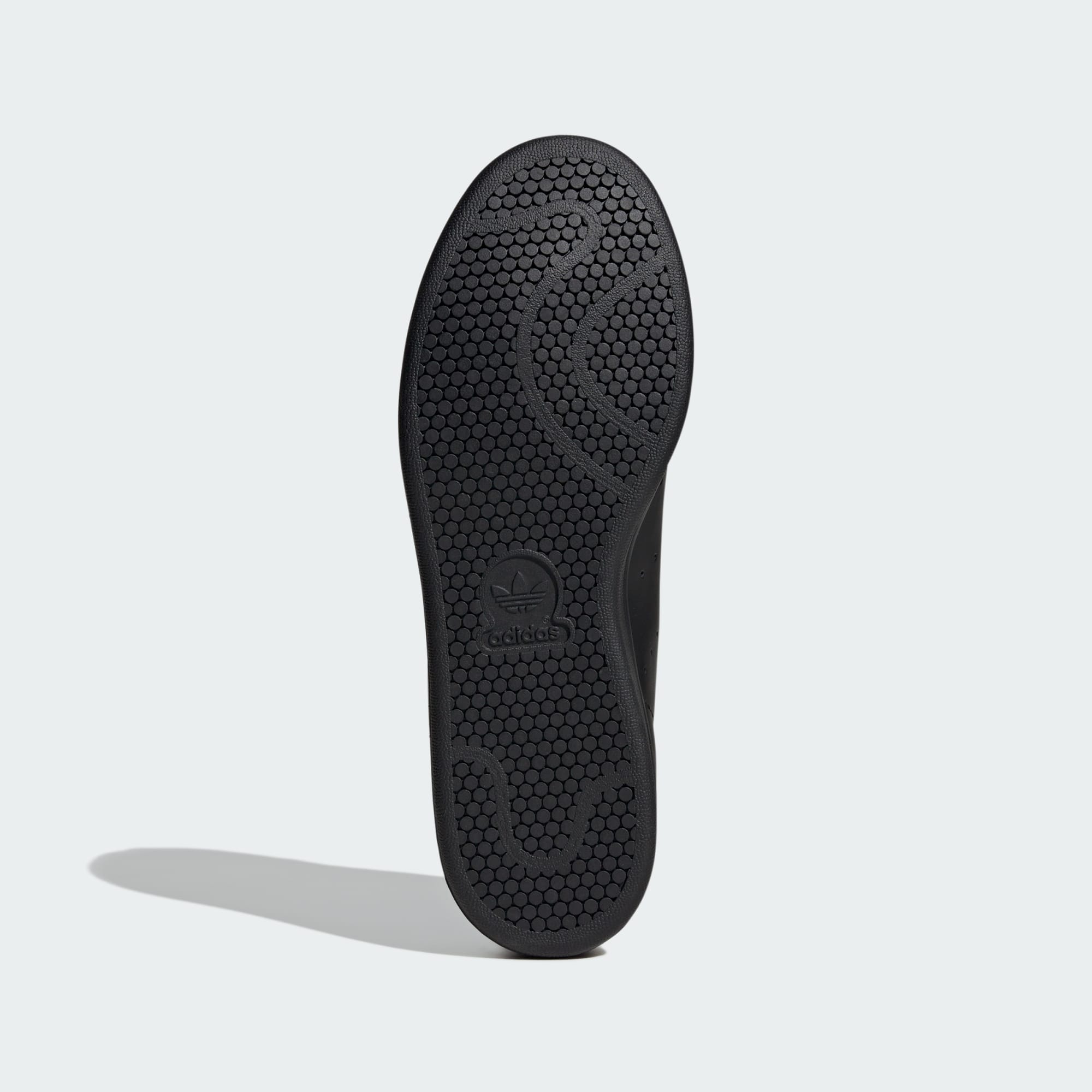 Logo Stan Smith di bagian lidah dan heel tab dipadukan dengan three stripes berbentuk lubang-lubang kecil.