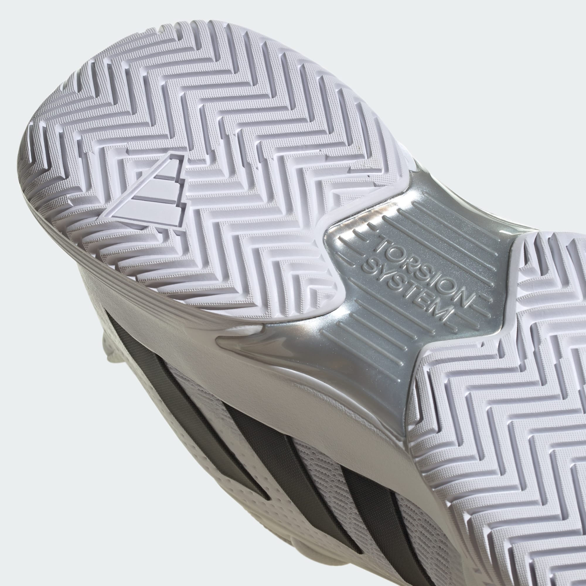 Outsole Adiwear dengan profil herringbone menciptakan keseimbangan traksi dan daya tahan yang sempurna di permukaan lapangan dengan permukaan keras.