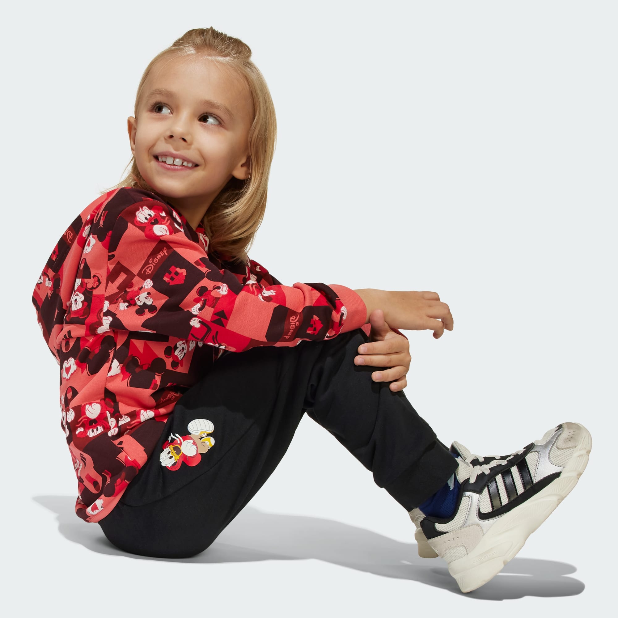 Setelan jogger dari adidas ini didesain untuk mengimbangi si kecil yang aktif saat sibuk beraktivitas. Atasan longgar bertudung dipadukan dengan jogger senada untuk tampilan dari ujung kepala hingga ujung kaki yang sangat nyaman. Grafis yang menampilkan Mickey Mouse dari Disney dan teman-temannya menghadirkan keseruan.