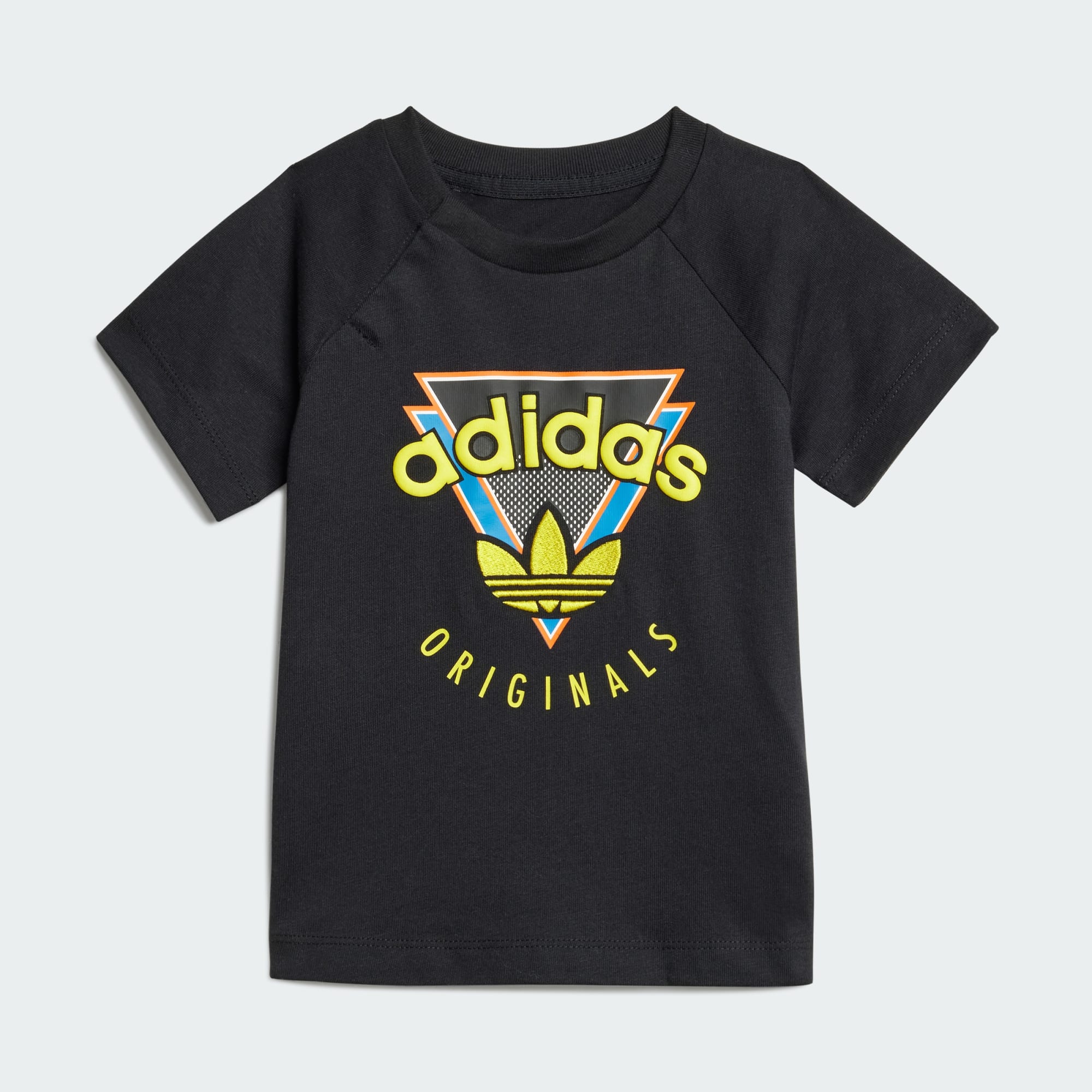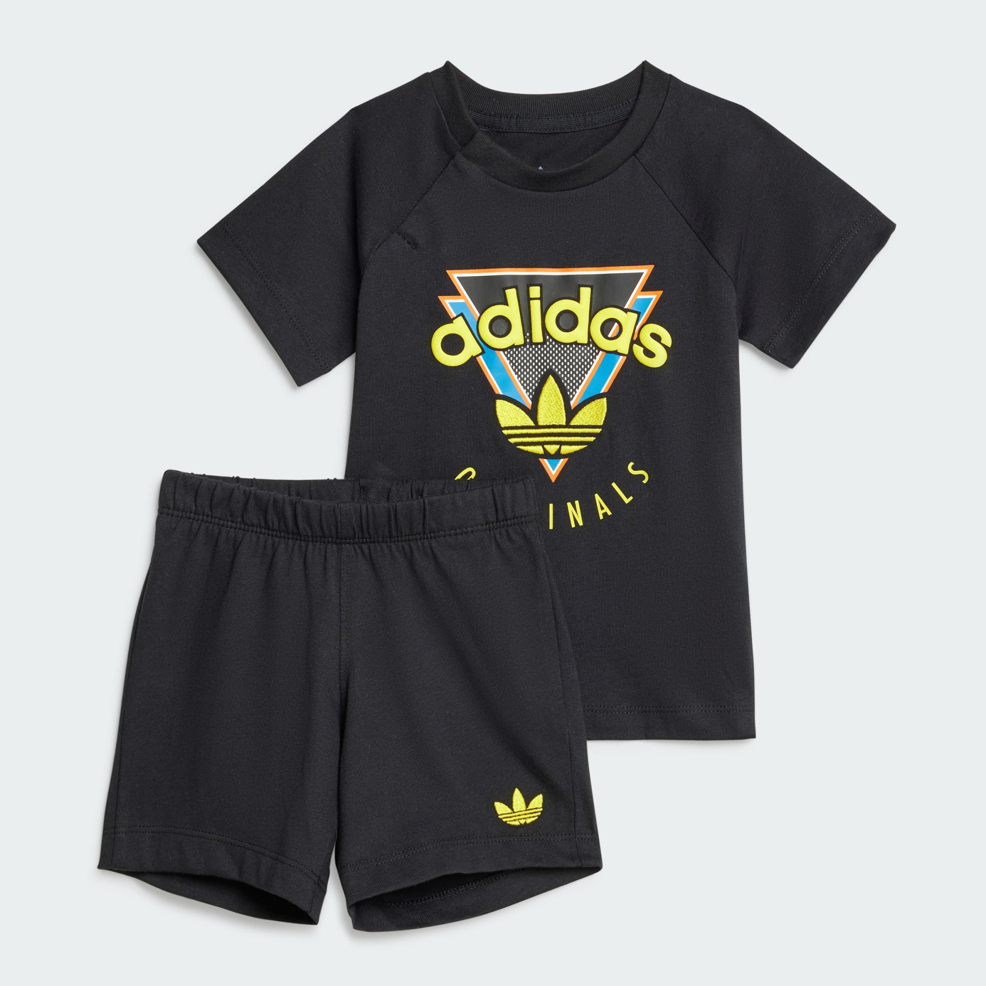 Setelan t-shirt dan celana pendek untuk batita dengan grafis adidas Originals yang mencolok.