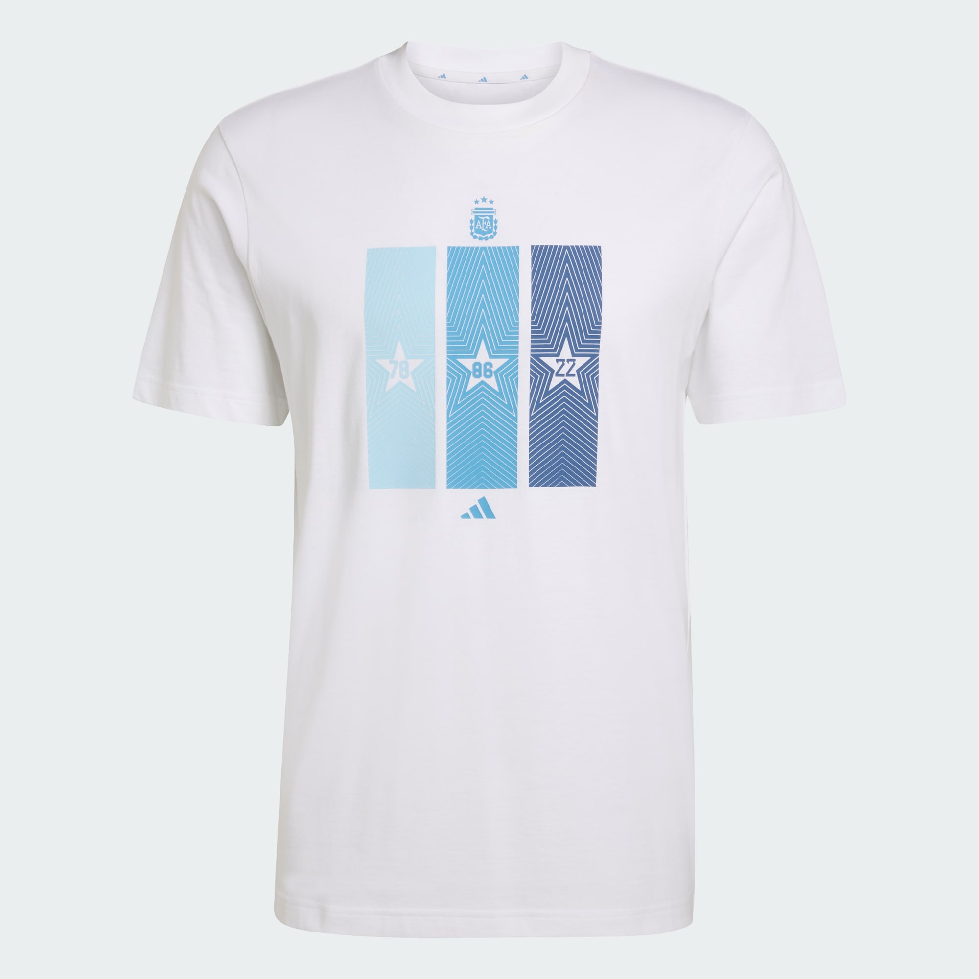 T-Shirt Argentina Home menunjukkan gairah sepak bola dengan penuh gaya. Dibuat dari katun murni yang lembut, kaus ini sangat nyaman untuk dipakai sehari-hari. Fit reguler dan kerah crew memberikan kesan klasik, sementara detail bahu dan lubang lengan yang dibuat menurun menambahkan sentuhan modern, memadukan gaya streetwear tanpa melupakan DNA sepak bola. Kaus ini juga dihiasi grafis istimewa yang merayakan tiga kemenangan Piala Dunia Argentina, serta dilengkapi lambang AFA dan logo adidas Performance—sebuah produk yang berakar pada warisan sepak bola, untuk dipakai dengan bangga setiap hari.