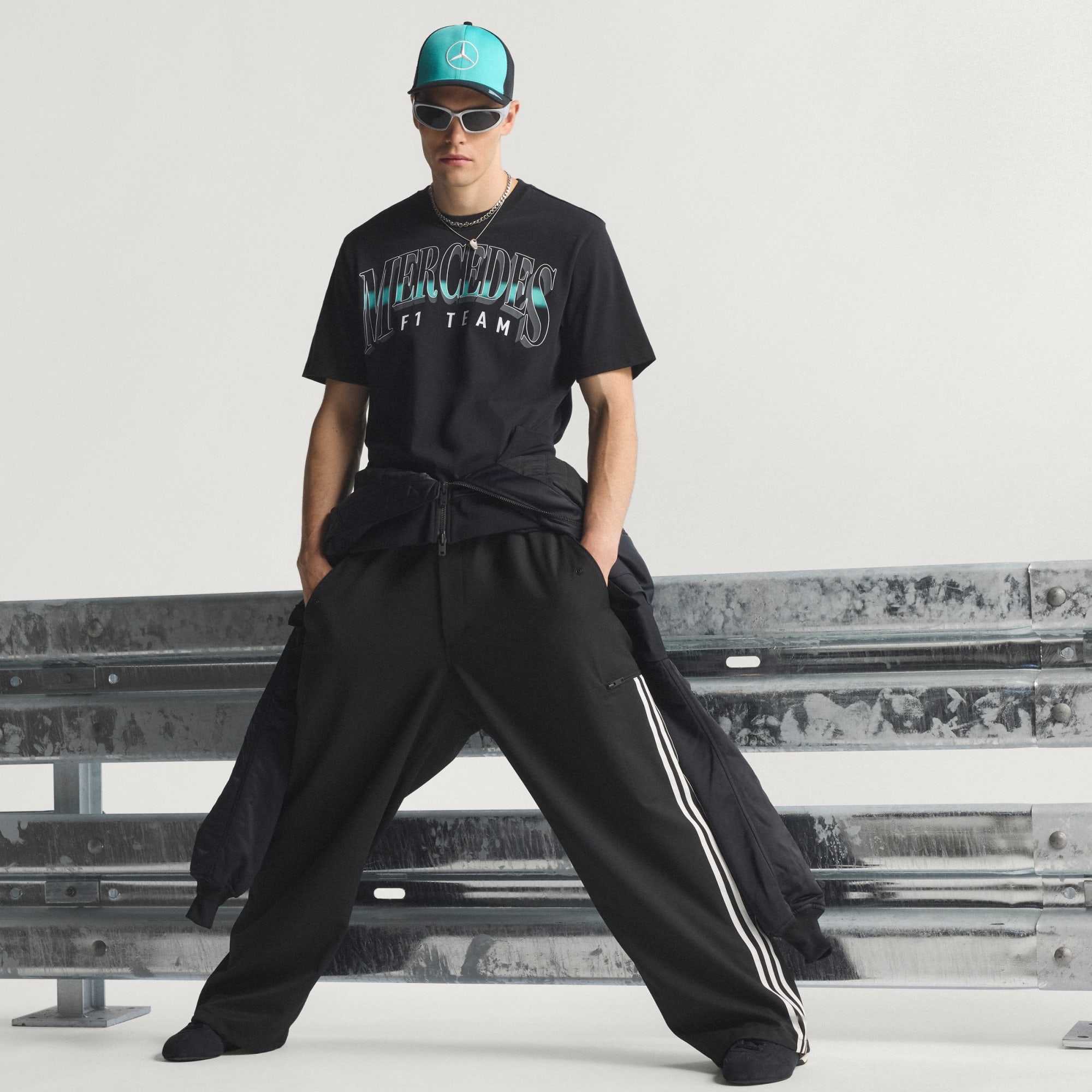- Logo adidas dan AMG Petronas
