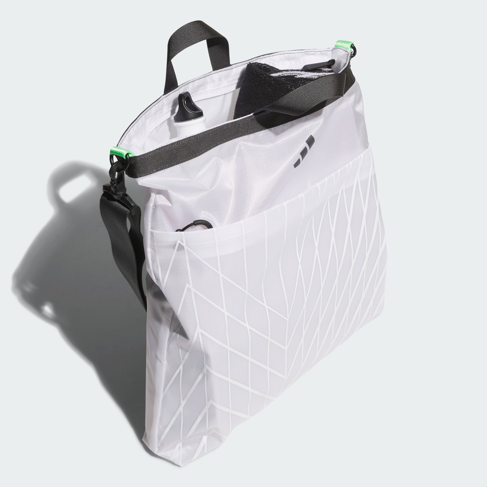 Jaga perlengkapan Anda tetap teratur dan siap berangkat. Tas jinjing golf adidas ini memiliki banyak ruang untuk satu atau dua lapisan dan aksesori hari golf. Tas ini memiliki kompartemen utama beritsleting dan strap bahu lepas-pasang.