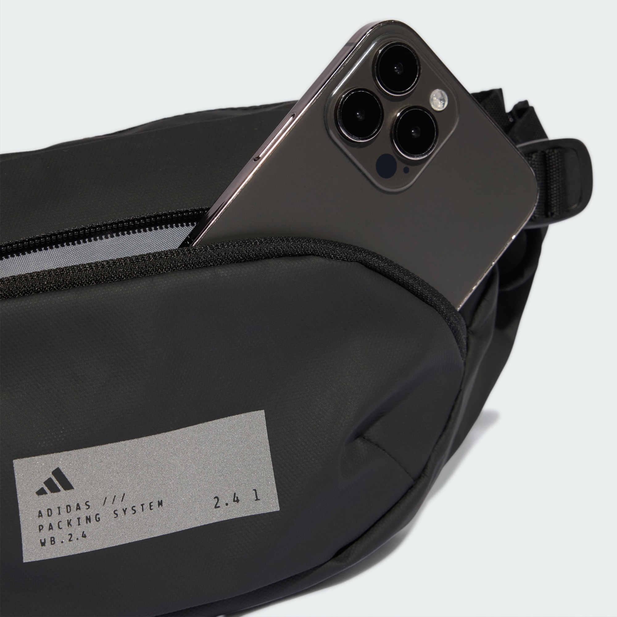 Tas pinggang ramping dengan strap yang dapat disesuaikan.