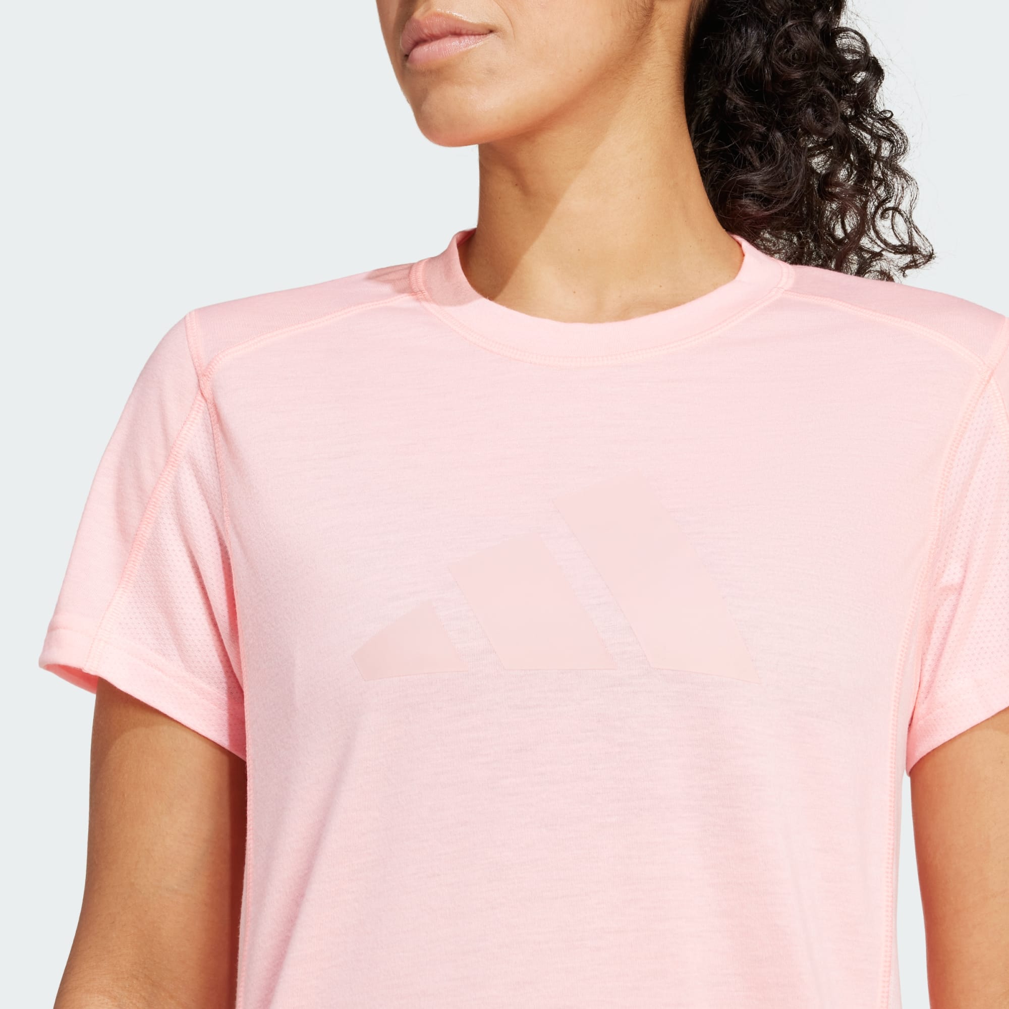 Tee latihan esensial yang sebagian dibuat dari paduan material daur ulang dan terbarukan.