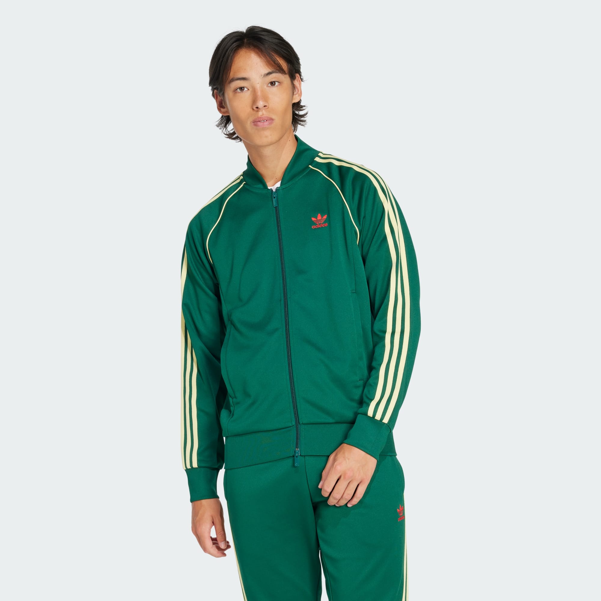 Setiap orang memerlukan track jacket yang bagus. Ini milikmu. Dibuat dari kain interlock yang lembut, jaket wajib dari adidas ini mempertahankan inspirasi desain dari arsip. Bordir logo Trefoil dan 3-Stripes mengapresiasi style klasik, sedangkan kelim dan manset rib membuat fit-nya tetap pas di semua bagian. Full-zip di bagian depan membuatmu dapat melapisi pakaian dengan hangat atau membiarkannya terbuka dengan t-shirt favorit di baliknya.
